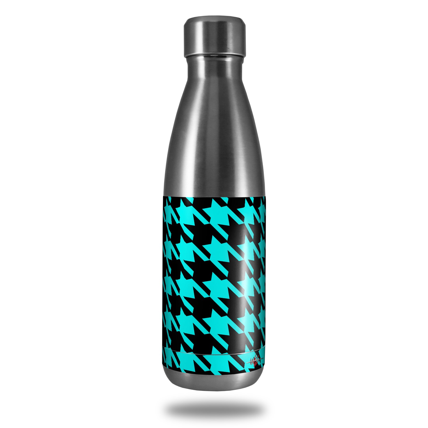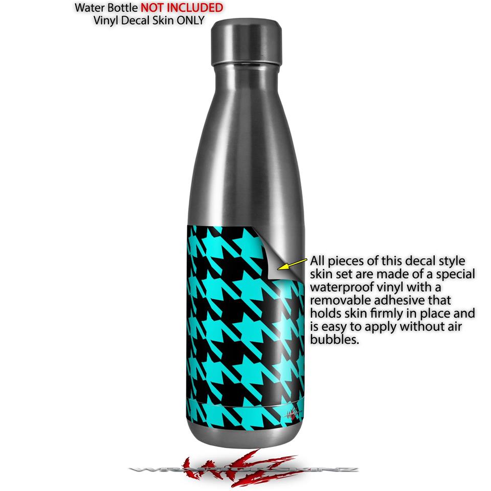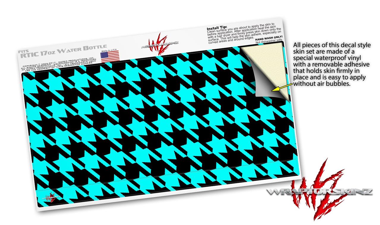 Skin Decal Wrap for RTIC Water Bottle 17oz Houndstooth Neon Teal on Black (BOTTLE NOT INCLUDED)