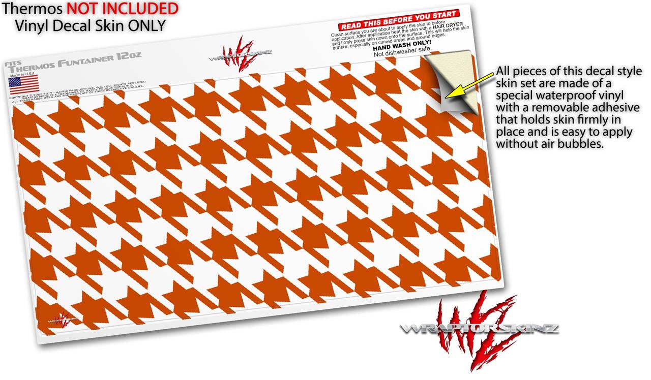Skin Decal Wrap for Thermos Funtainer 12oz Bottle Houndstooth Burnt Orange (BOTTLE NOT INCLUDED)