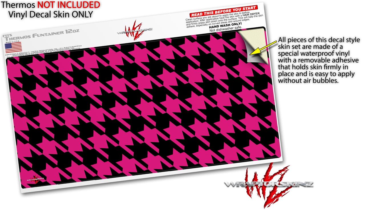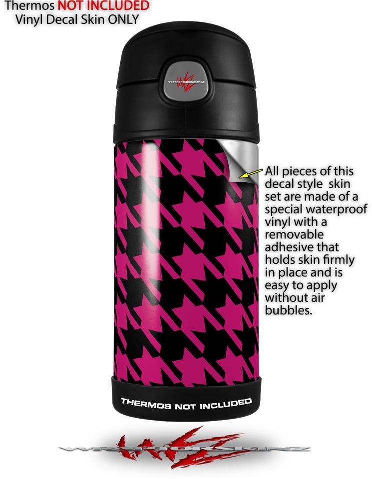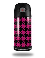 Skin Decal Wrap for Thermos Funtainer 12oz Bottle Houndstooth Hot Pink on Black (BOTTLE NOT INCLUDED)