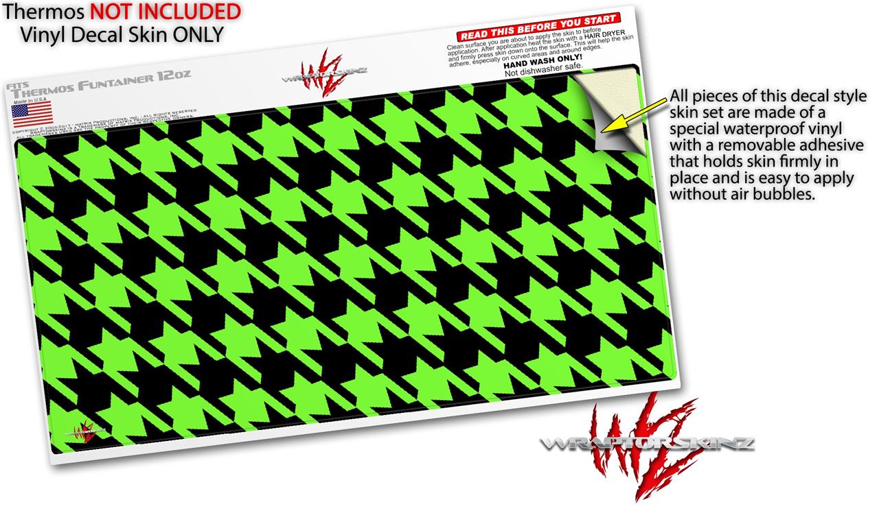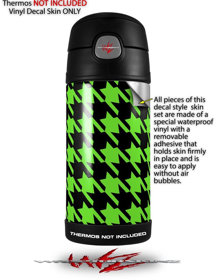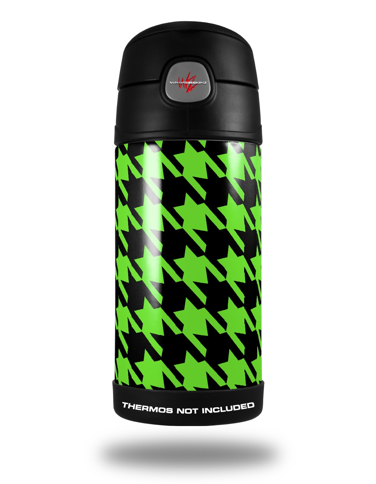 Skin Decal Wrap for Thermos Funtainer 12oz Bottle Houndstooth Neon Lime Green on Black (BOTTLE NOT INCLUDED)