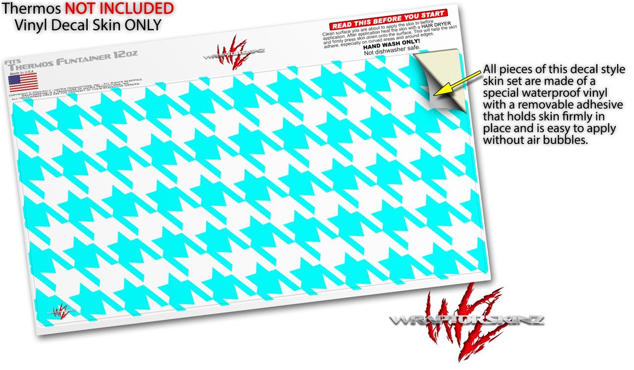Skin Decal Wrap for Thermos Funtainer 12oz Bottle Houndstooth Neon Teal (BOTTLE NOT INCLUDED)
