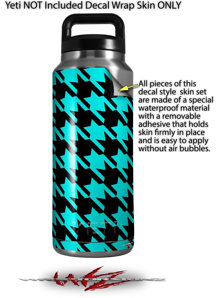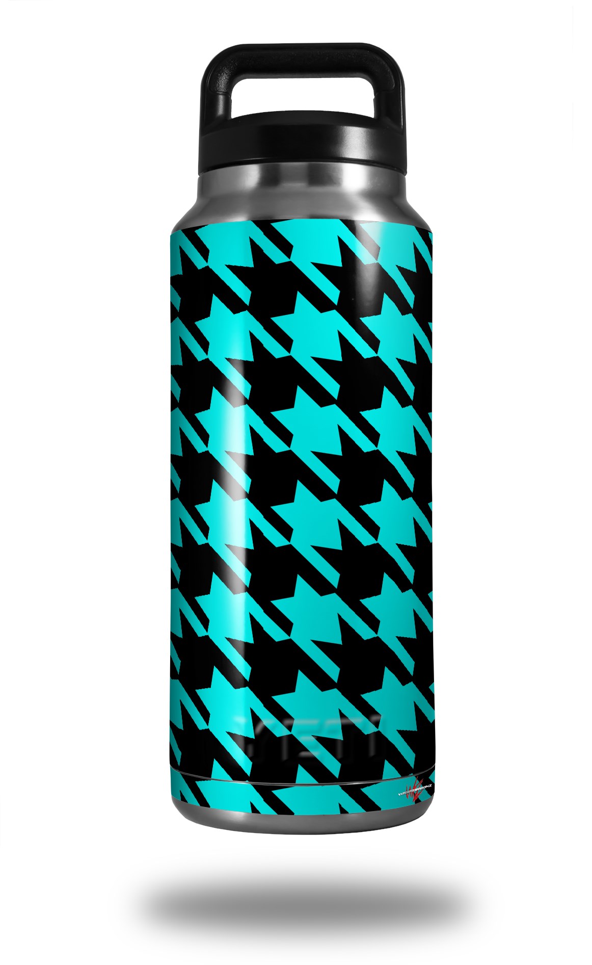 Skin Decal Wrap for Yeti Rambler Bottle 36oz Houndstooth Neon Teal on Black (YETI NOT INCLUDED)