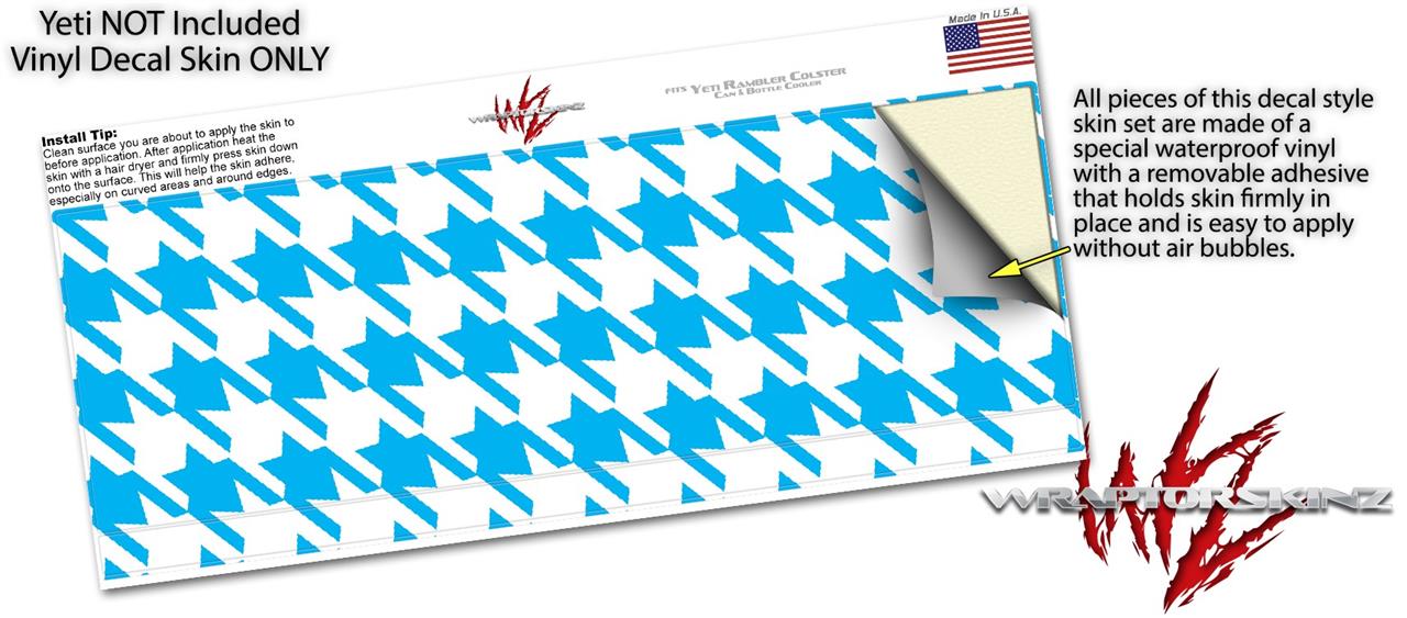 Skin Decal Wrap for Yeti Colster, Ozark Trail and RTIC Can Coolers - Houndstooth Blue Neon (COOLER NOT INCLUDED)
