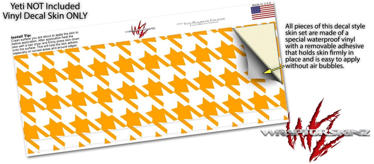 Skin Decal Wrap for Yeti Colster, Ozark Trail and RTIC Can Coolers - Houndstooth Orange (COOLER NOT INCLUDED)