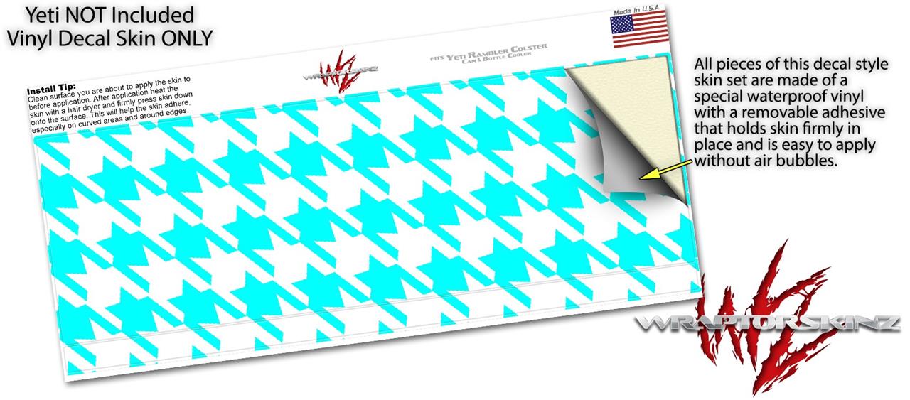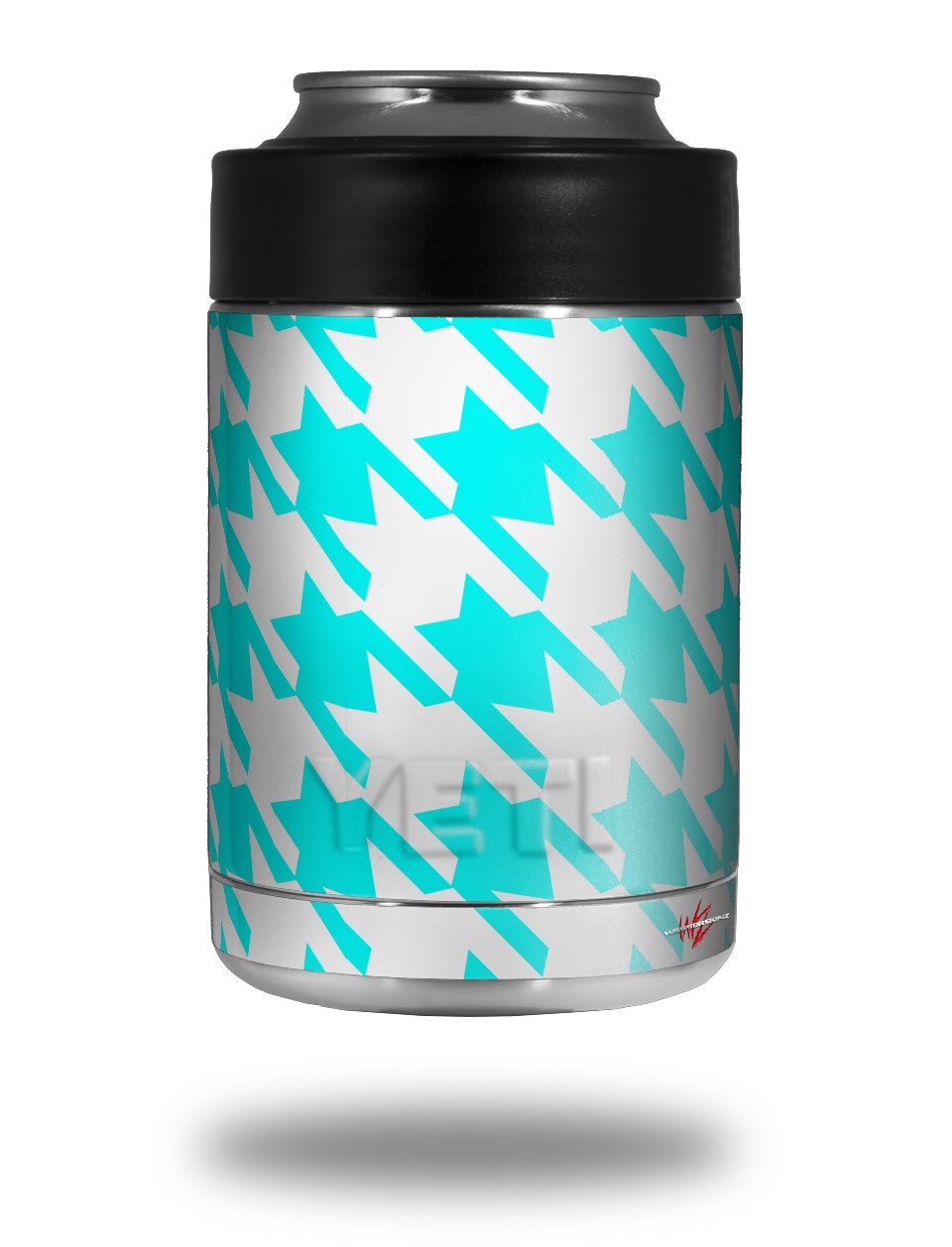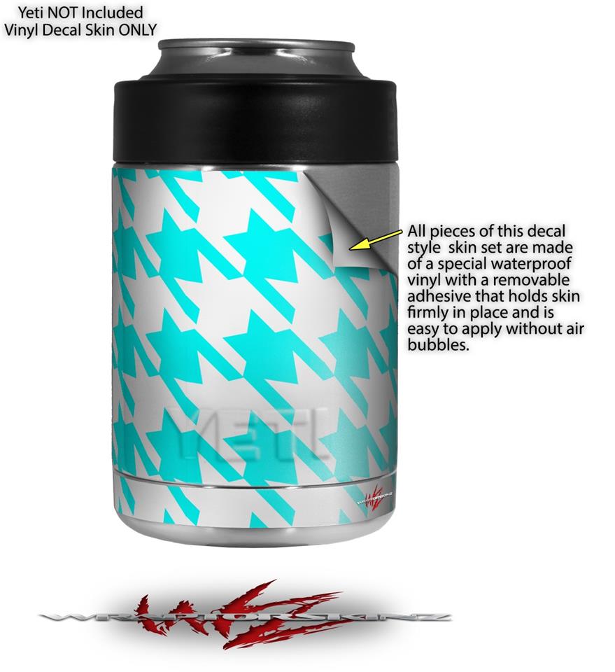 Skin Decal Wrap for Yeti Colster, Ozark Trail and RTIC Can Coolers - Houndstooth Neon Teal (COOLER NOT INCLUDED)