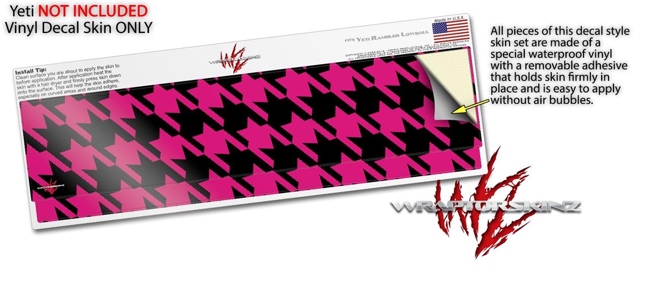 Skin Decal Wrap for Yeti Rambler Lowball - Houndstooth Hot Pink on Black (CUP NOT INCLUDED)