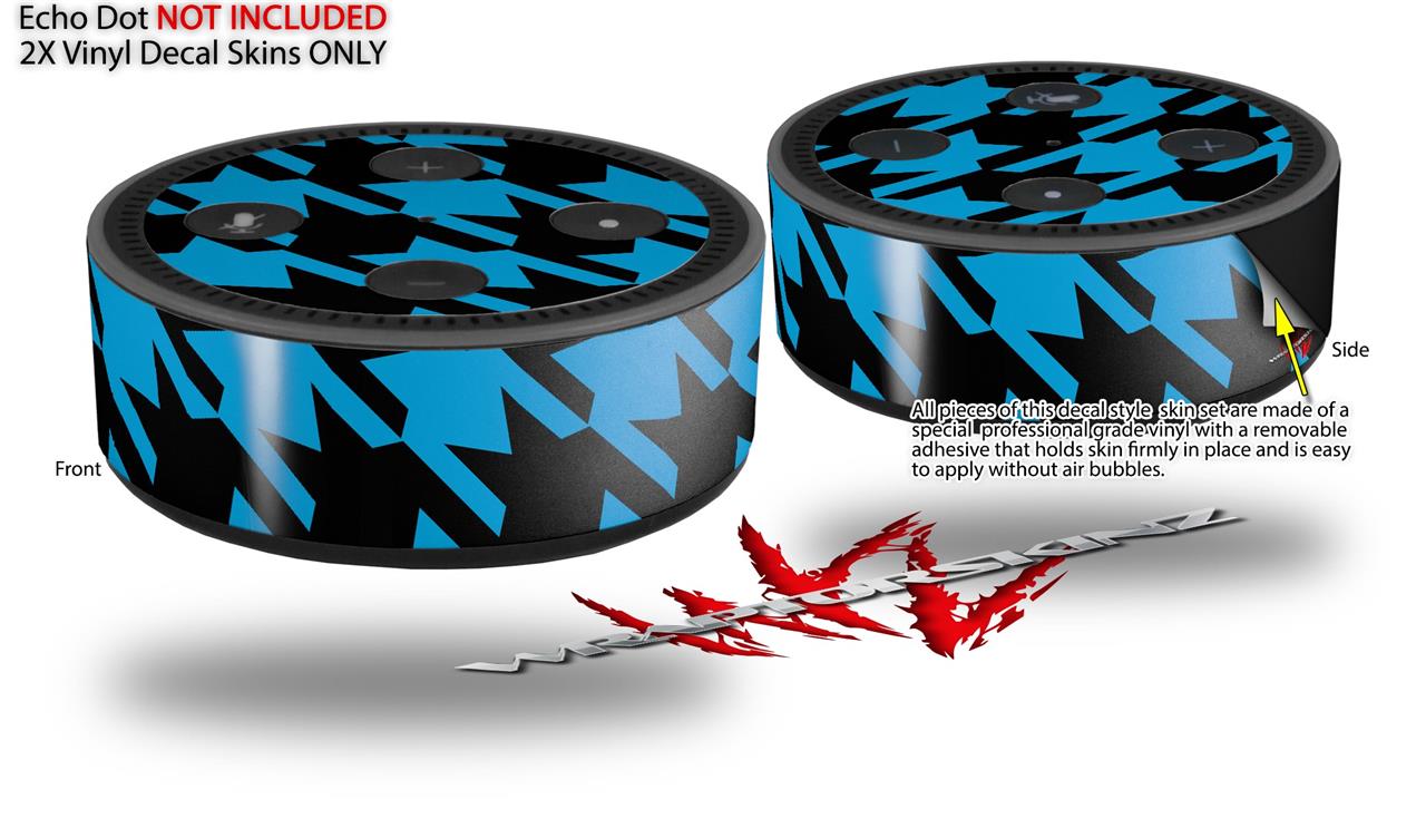 Skin Wrap Decal Set 2 Pack for Amazon Echo Dot 2 - Houndstooth Blue Neon on Black (2nd Generation ONLY - Echo NOT INCLUDED)