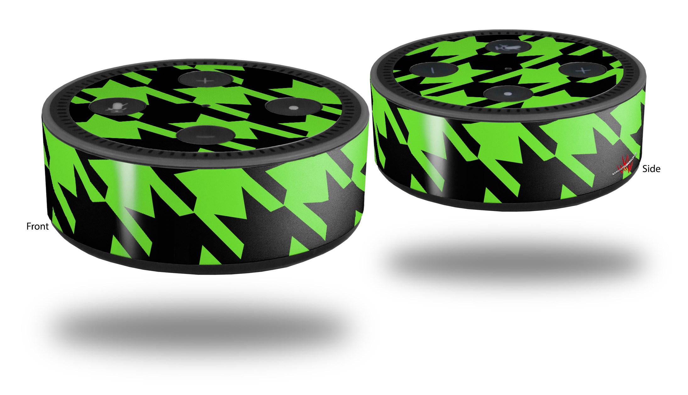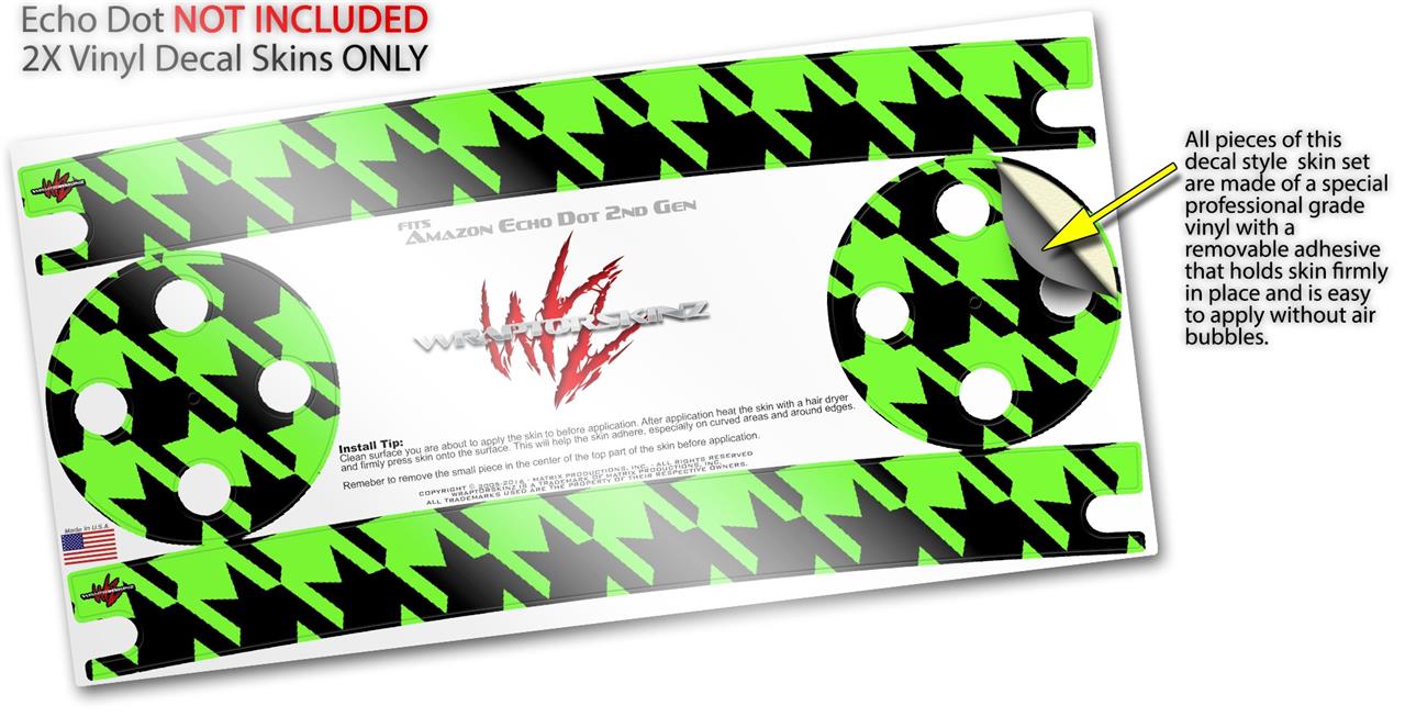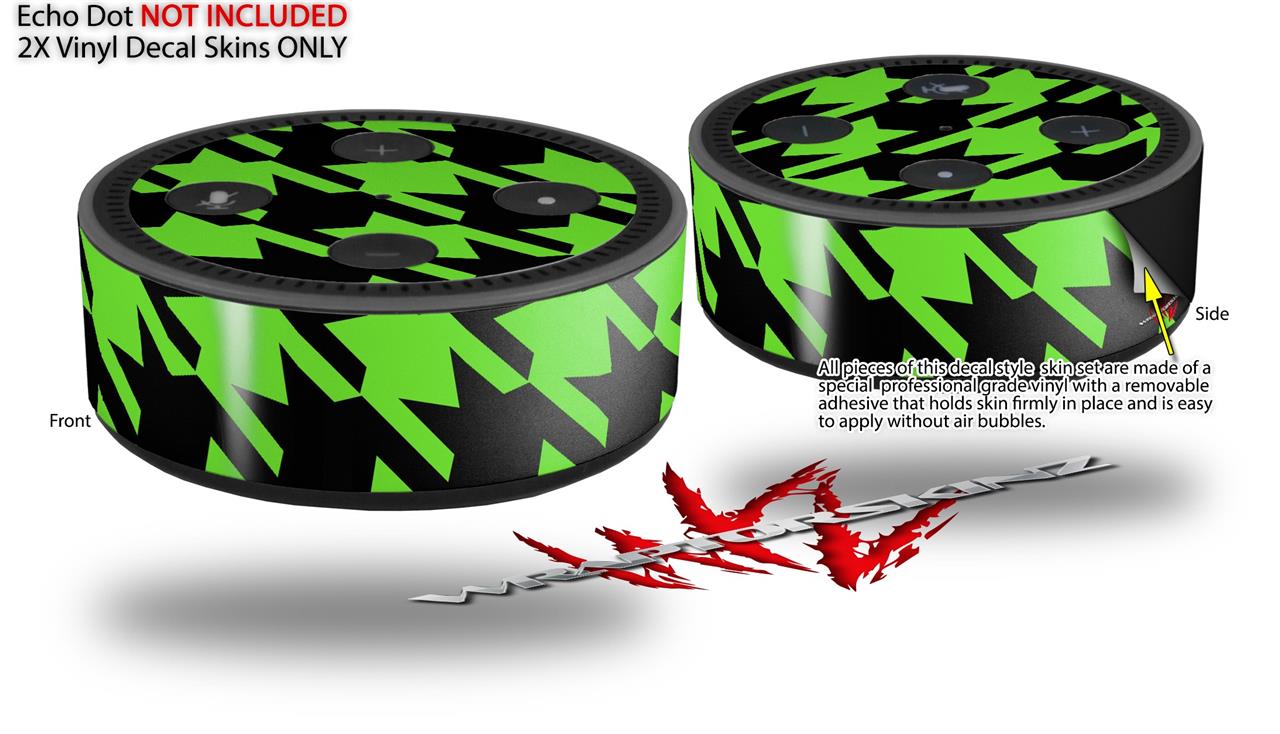 Skin Wrap Decal Set 2 Pack for Amazon Echo Dot 2 - Houndstooth Neon Lime Green on Black (2nd Generation ONLY - Echo NOT INCLUDED)