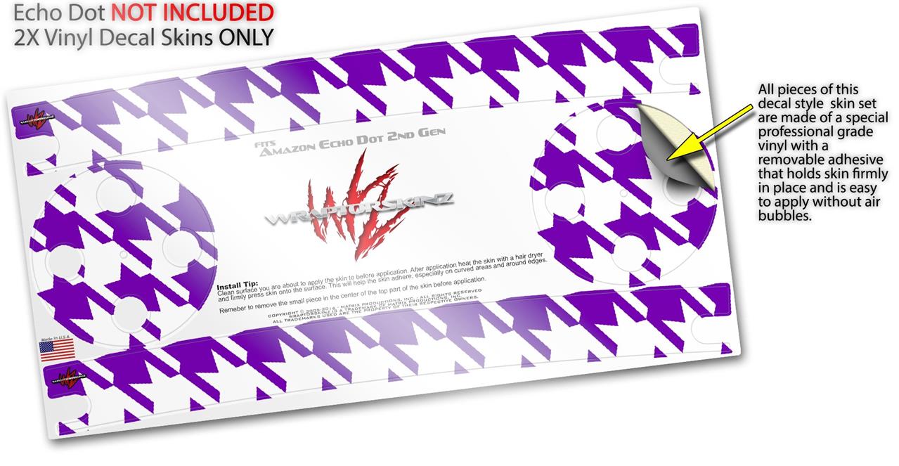 Skin Wrap Decal Set 2 Pack for Amazon Echo Dot 2 - Houndstooth Purple (2nd Generation ONLY - Echo NOT INCLUDED)