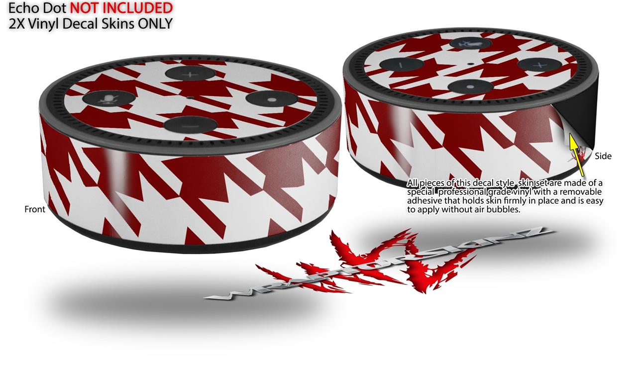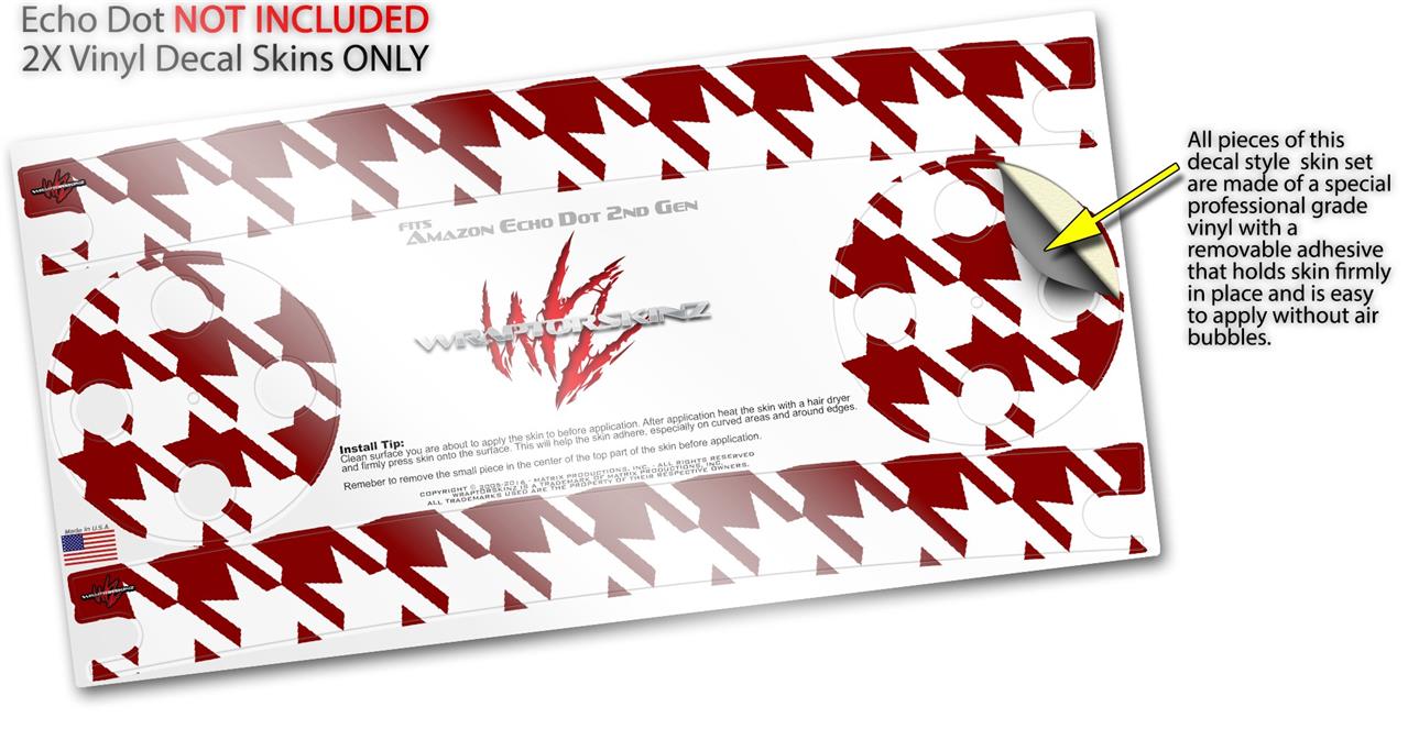 Skin Wrap Decal Set 2 Pack for Amazon Echo Dot 2 - Houndstooth Red Dark (2nd Generation ONLY - Echo NOT INCLUDED)