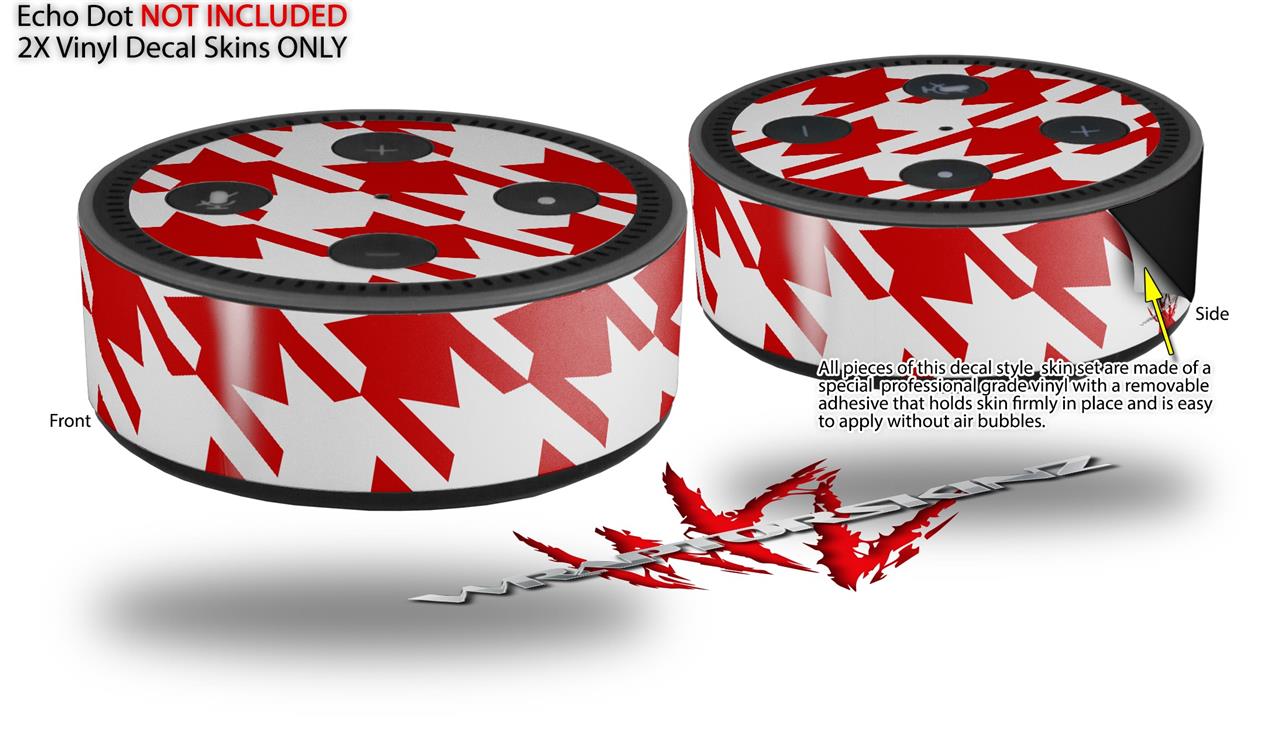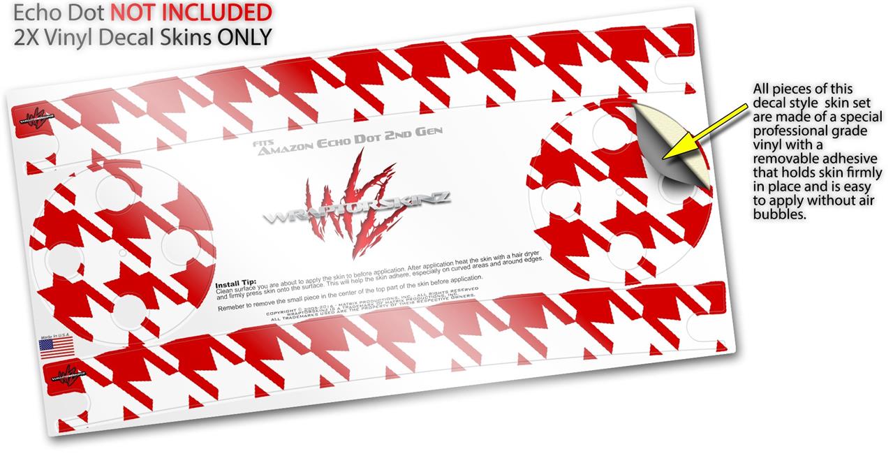 Skin Wrap Decal Set 2 Pack for Amazon Echo Dot 2 - Houndstooth Red (2nd Generation ONLY - Echo NOT INCLUDED)