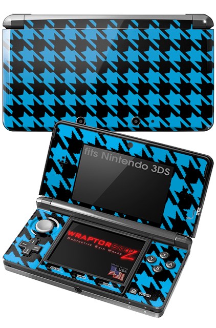 Nintendo 3DS Decal Style Skin - Houndstooth Blue Neon on Black