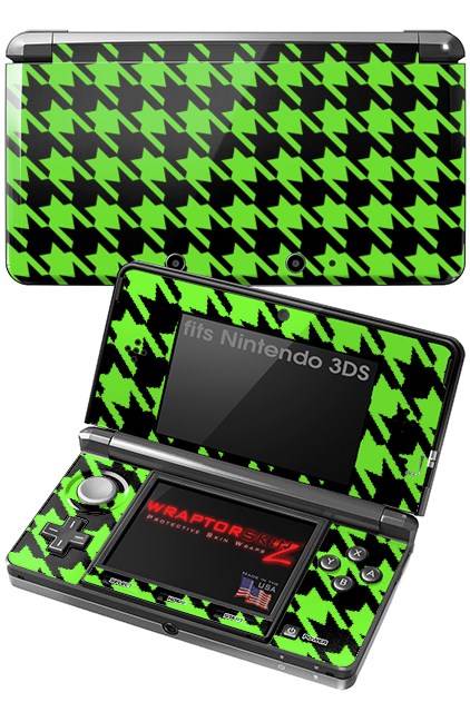 Nintendo 3DS Decal Style Skin - Houndstooth Neon Lime Green on Black