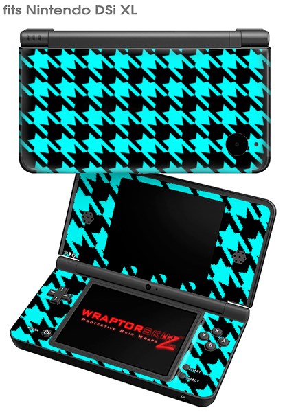 Nintendo DSi XL Skin Houndstooth Neon Teal on Black