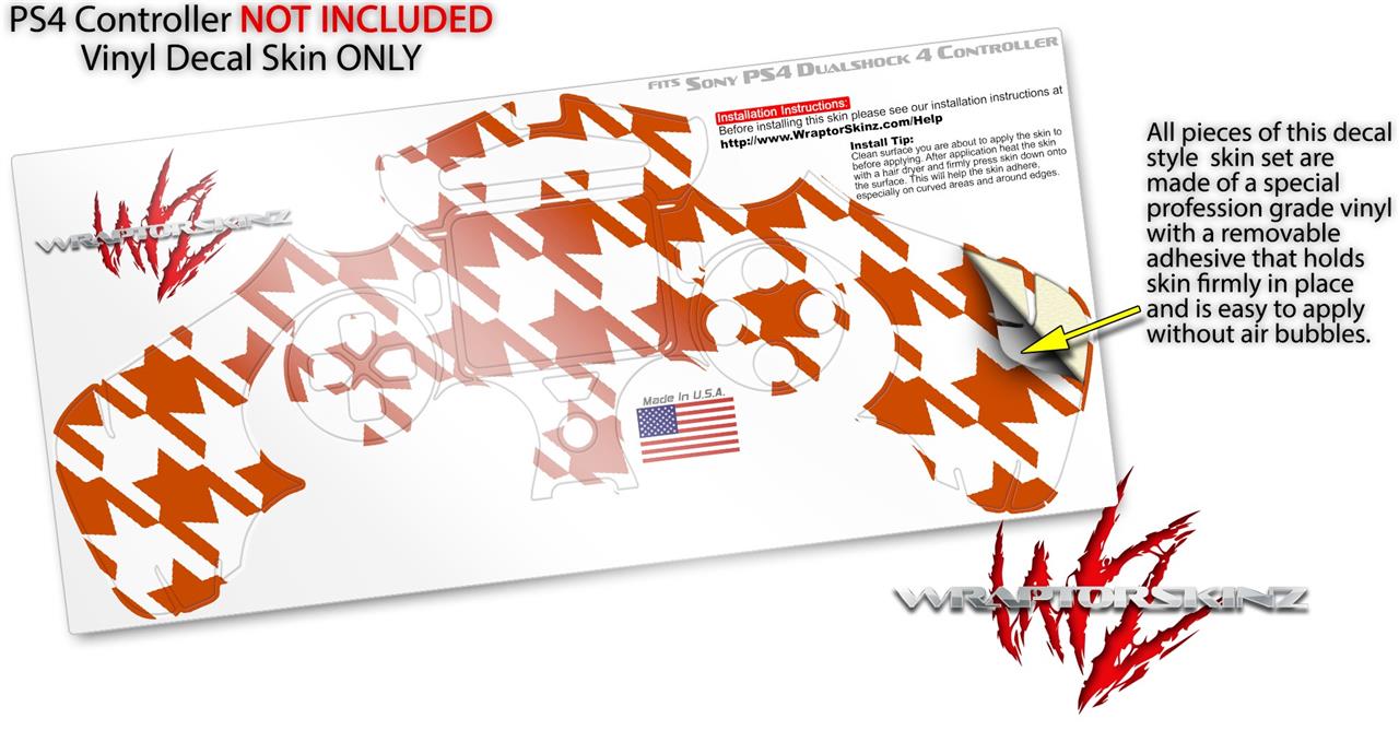 WraptorSkinz Skin compatible with Sony PS4 Dualshock Controller PlayStation 4 Original Slim and Pro Houndstooth Burnt Orange (CONTROLLER NOT INCLUDED)