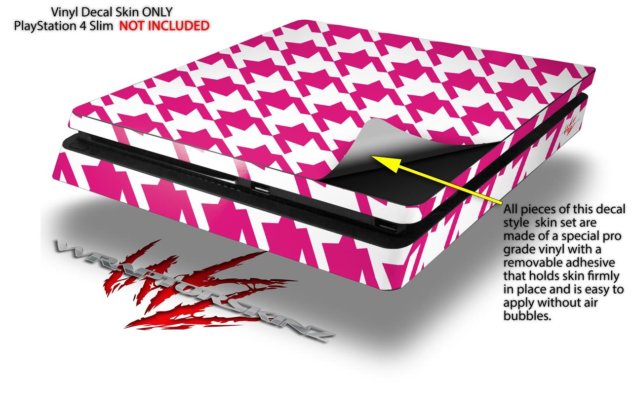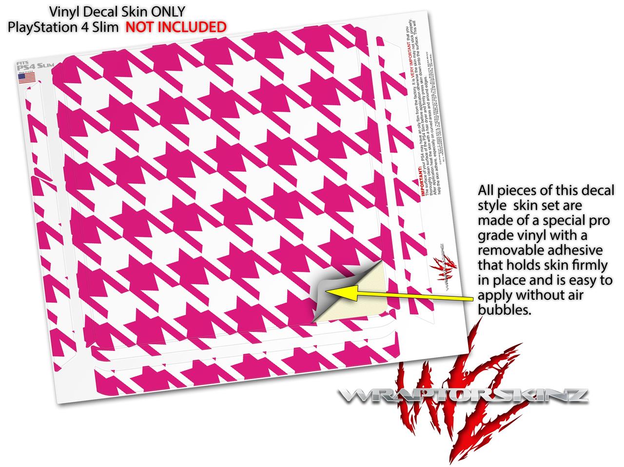 Vinyl Decal Skin Wrap compatible with Sony PlayStation 4 Slim Console Houndstooth Hot Pink (PS4 NOT INCLUDED)