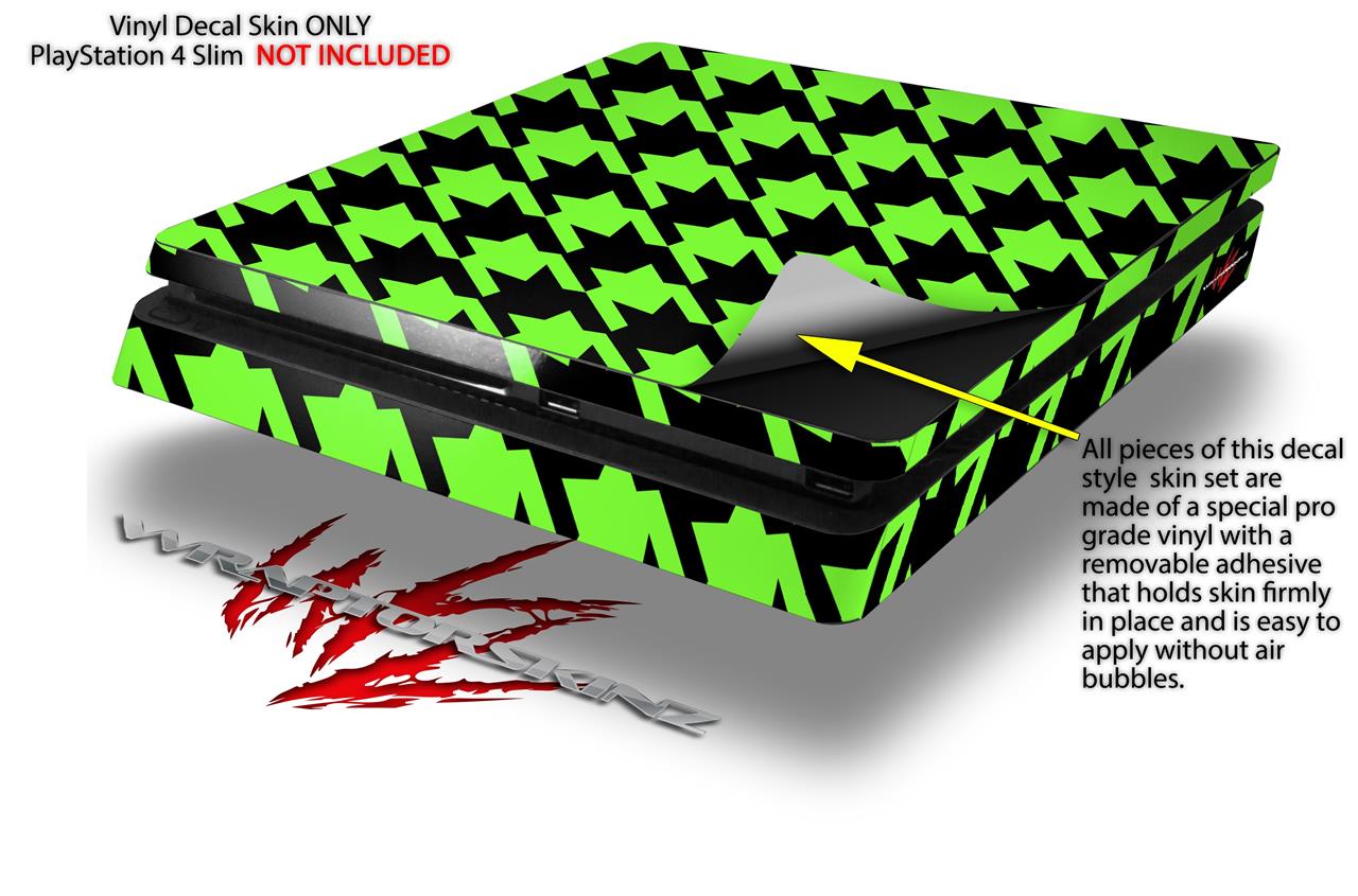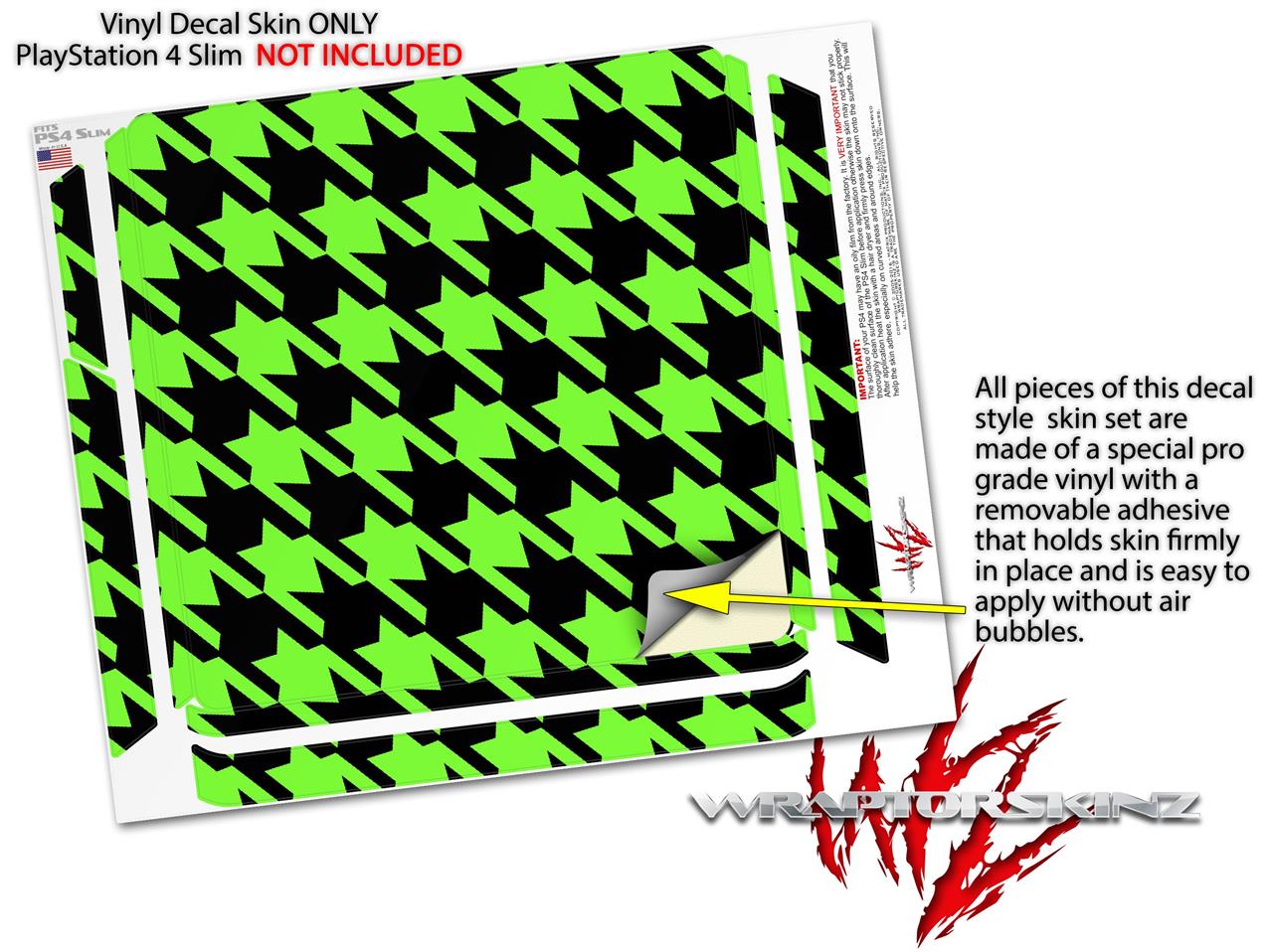 Vinyl Decal Skin Wrap compatible with Sony PlayStation 4 Slim Console Houndstooth Neon Lime Green on Black (PS4 NOT INCLUDED)