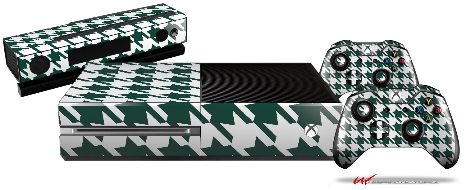 Houndstooth Hunter Green - Holiday Bundle Decal Style Skin fits XBOX One Console Original, Kinect and 2 Controllers (XBOX SYSTEM NOT INCLUDED)