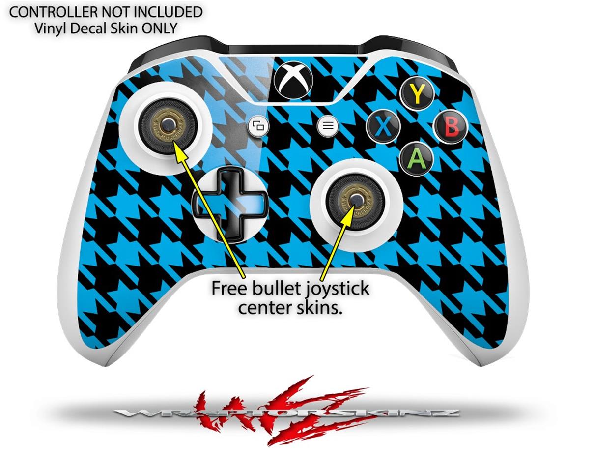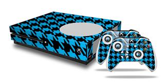 WraptorSkinz Decal Skin Wrap Set works with 2016 and newer XBOX One S Console and 2 Controllers Houndstooth Blue Neon on Black