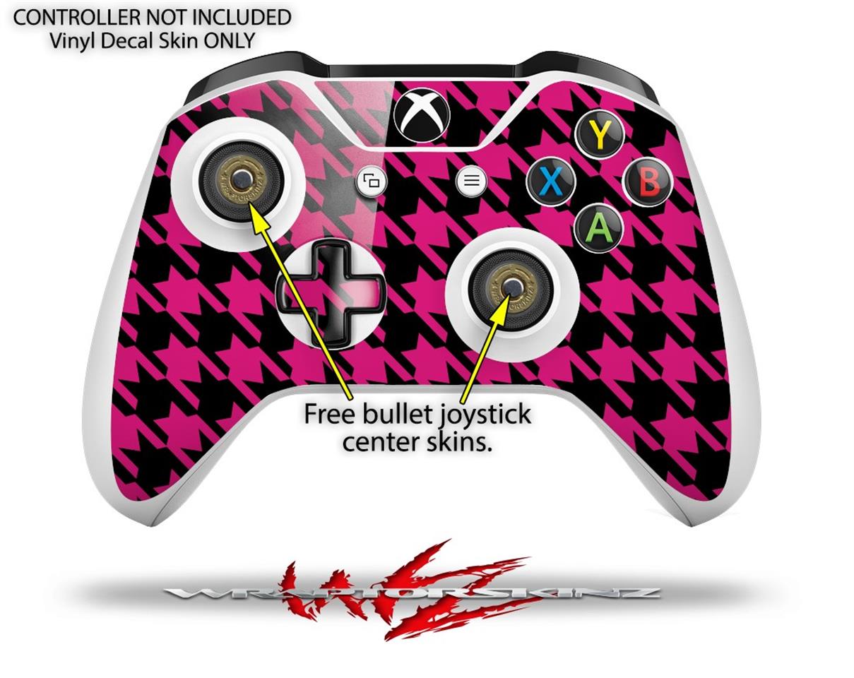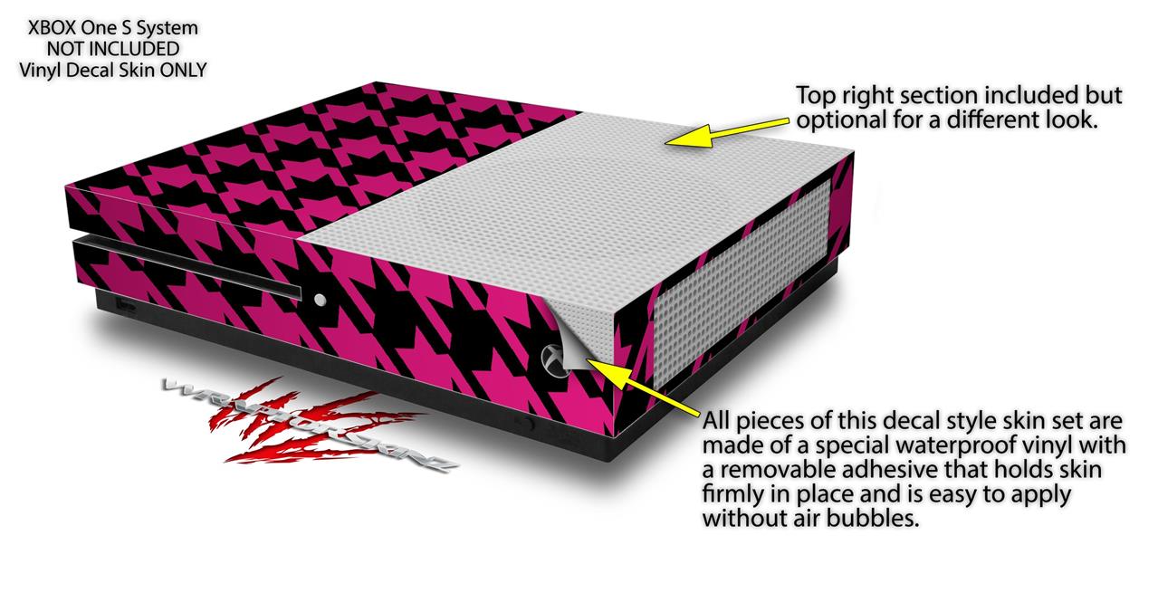 WraptorSkinz Decal Skin Wrap Set works with 2016 and newer XBOX One S Console and 2 Controllers Houndstooth Hot Pink on Black