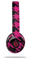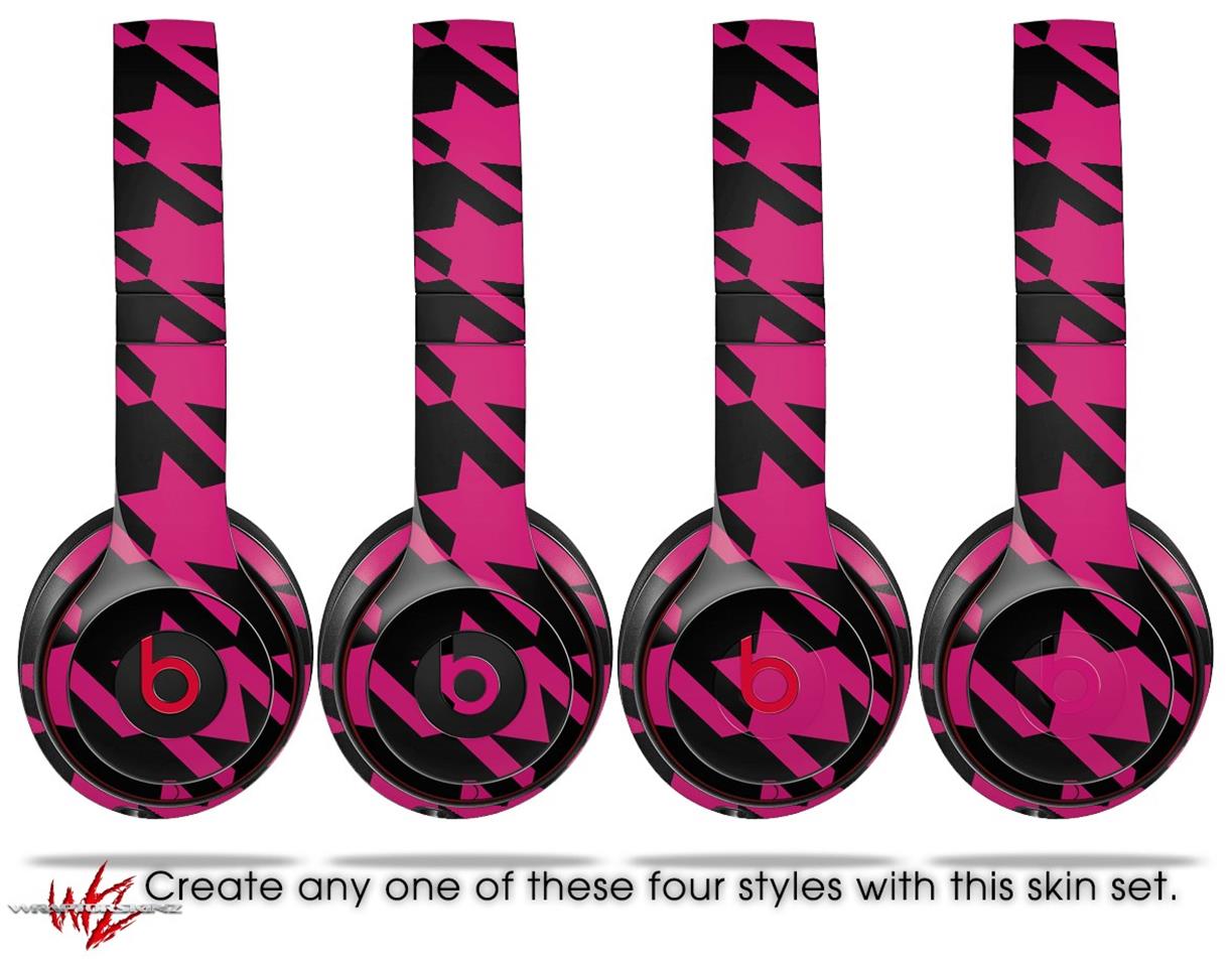 WraptorSkinz Skin Decal Wrap compatible with Beats Solo 2 and Solo 3 Wireless Headphones Houndstooth Hot Pink on Black Skin Only (HEADPHONES NOT INCLUDED)