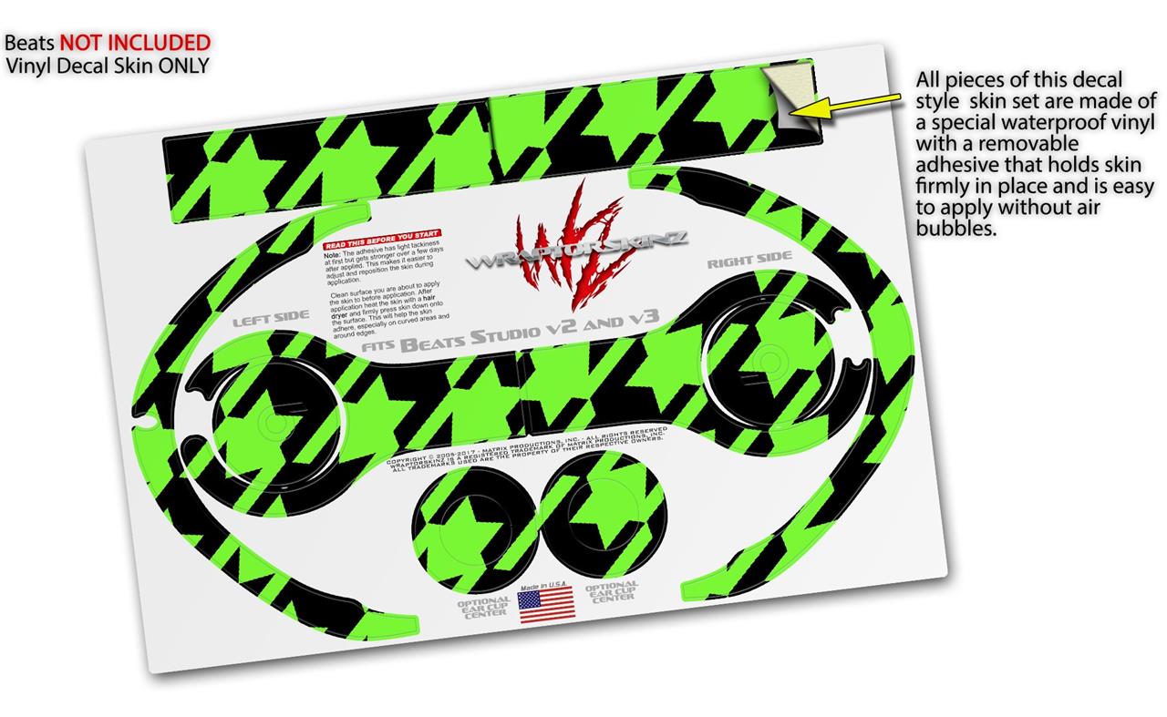 WraptorSkinz Skin Decal Wrap compatible with Beats Studio 2 and 3 Wired and Wireless Headphones Houndstooth Neon Lime Green on Black Skin Only HEADPHONES NOT INCLUDED