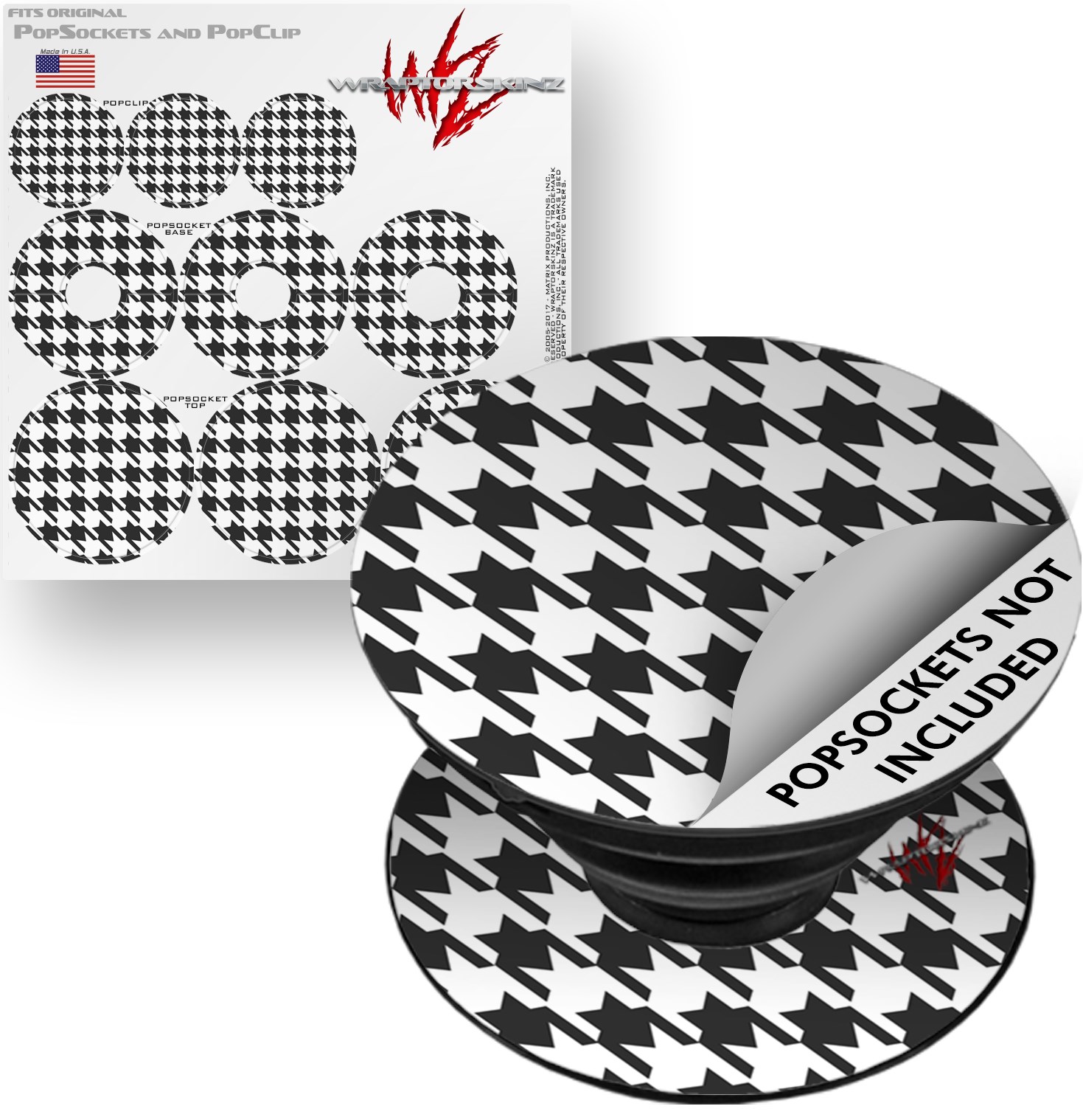 Decal Style Vinyl Skin Wrap 3 Pack for PopSockets Houndstooth Dark Gray (POPSOCKET NOT INCLUDED)