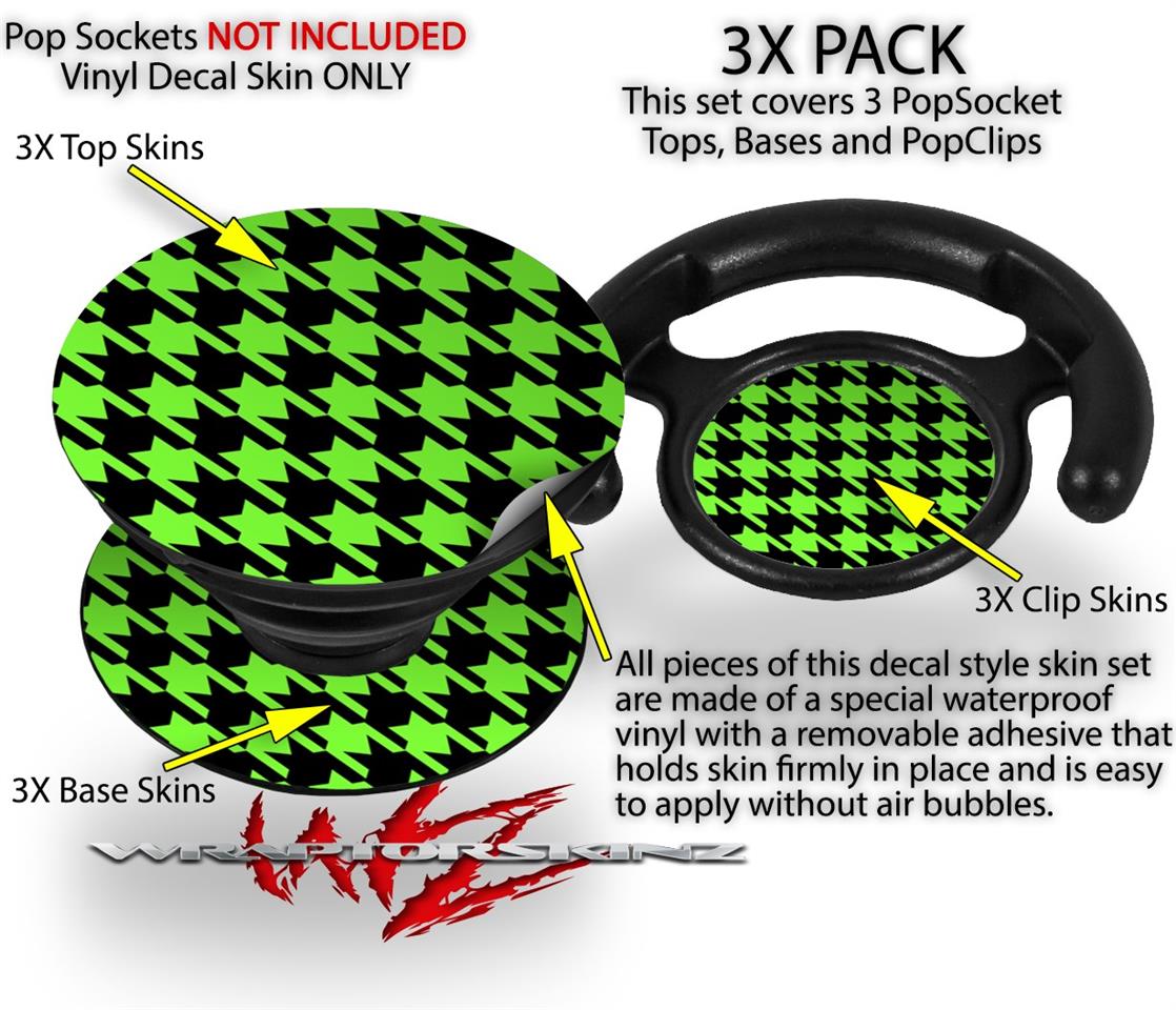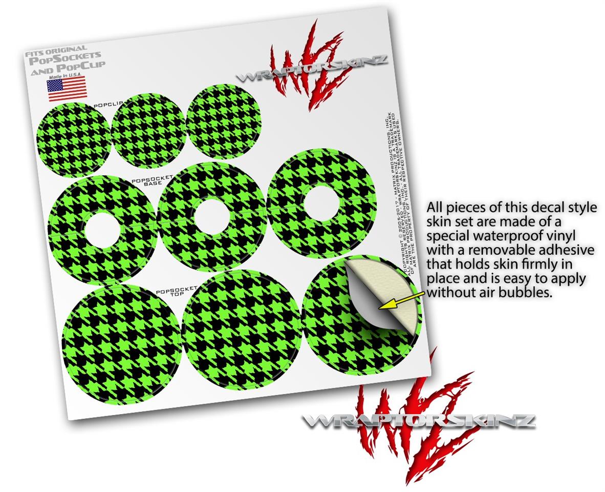 Decal Style Vinyl Skin Wrap 3 Pack for PopSockets Houndstooth Neon Lime Green on Black (POPSOCKET NOT INCLUDED)