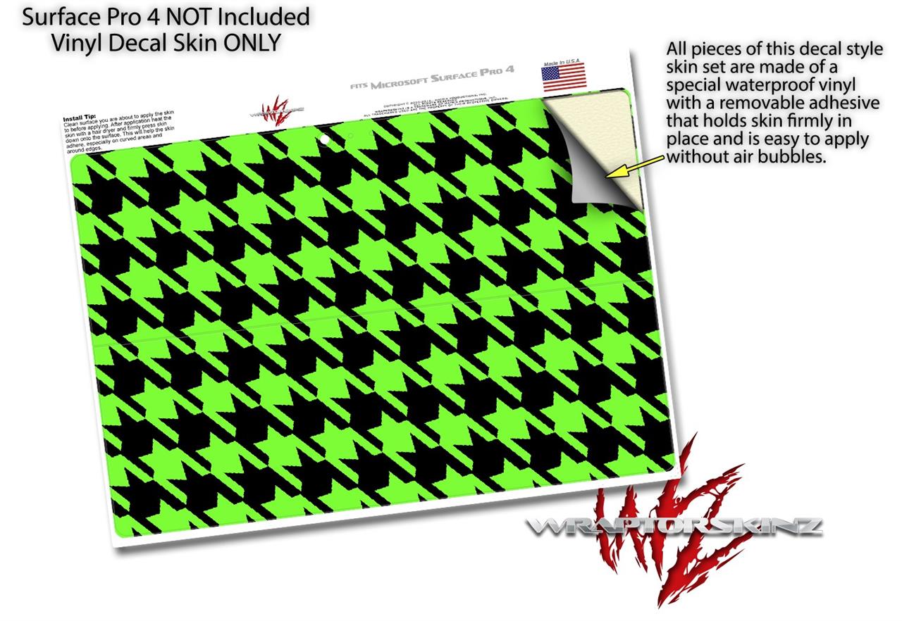 Decal Style Vinyl Skin for Microsoft Surface Pro 4 - Houndstooth Neon Lime Green on Black - (SURFACE NOT INCLUDED)