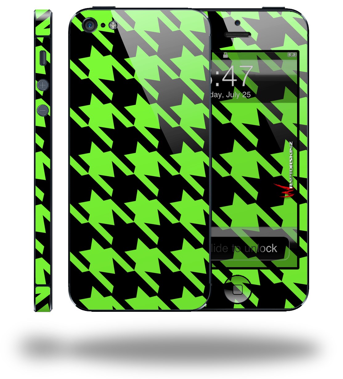 Houndstooth Neon Lime Green on Black - Decal Style Vinyl Skin (compatible with Apple Original iPhone 5, NOT the iPhone 5C or 5S)