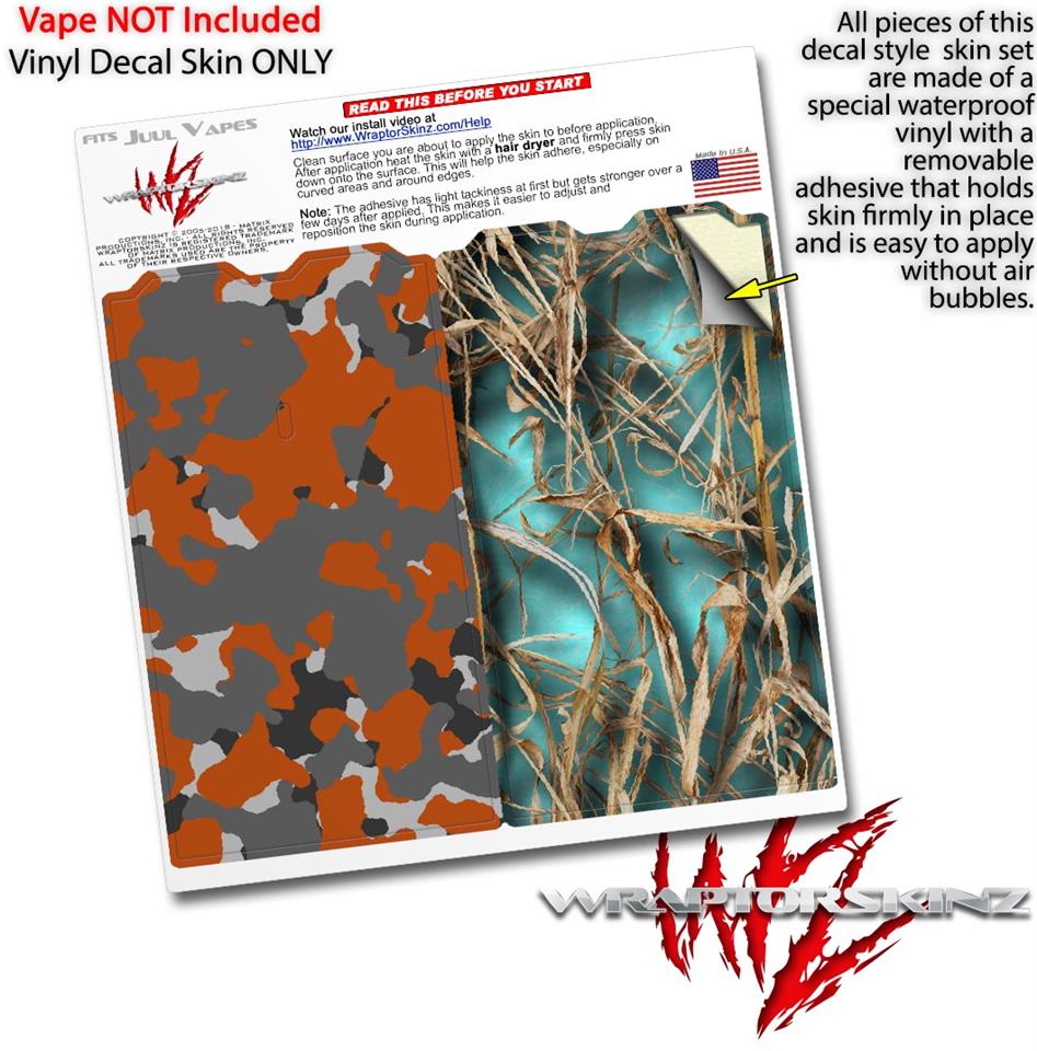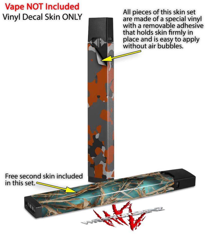 Skin Decal Wrap 2 Pack for Juul Vapes WraptorCamo Old School Camouflage Camo Orange Burnt JUUL NOT INCLUDED
