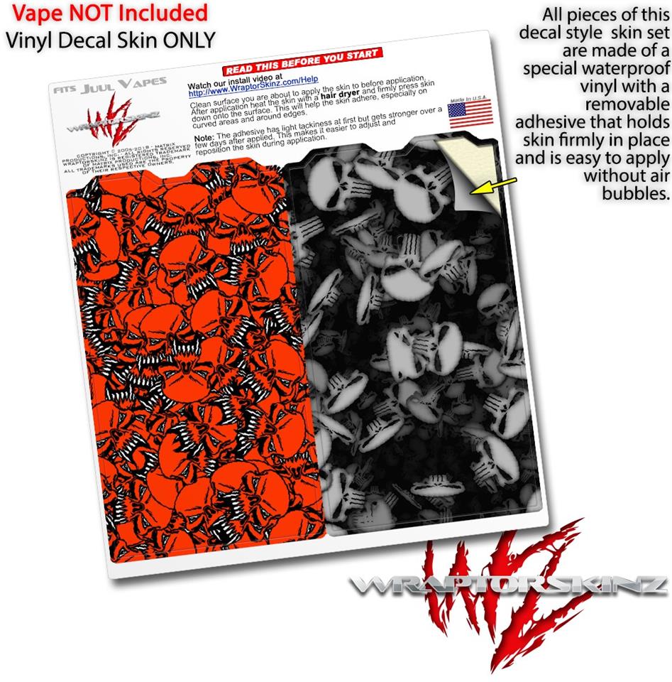 Skin Decal Wrap 2 Pack for Juul Vapes Scattered Skulls Red JUUL NOT INCLUDED