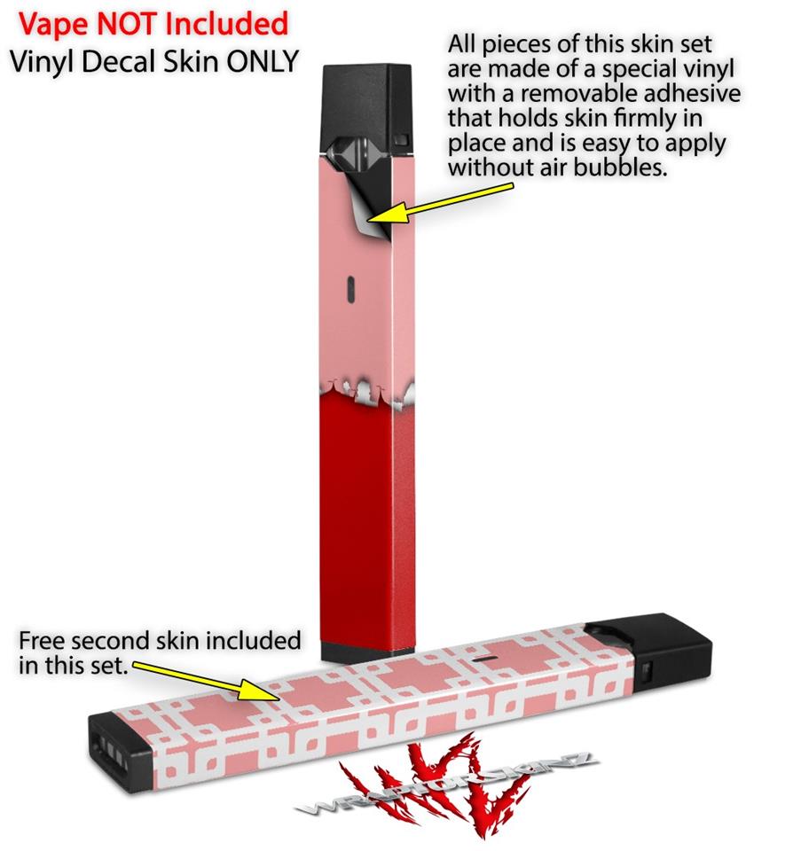 Skin Decal Wrap 2 Pack for Juul Vapes Ripped Colors Pink Red JUUL NOT INCLUDED