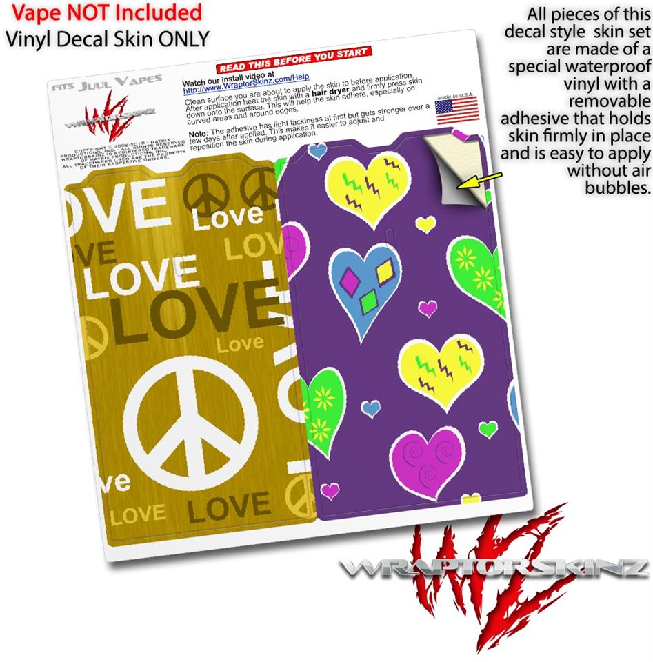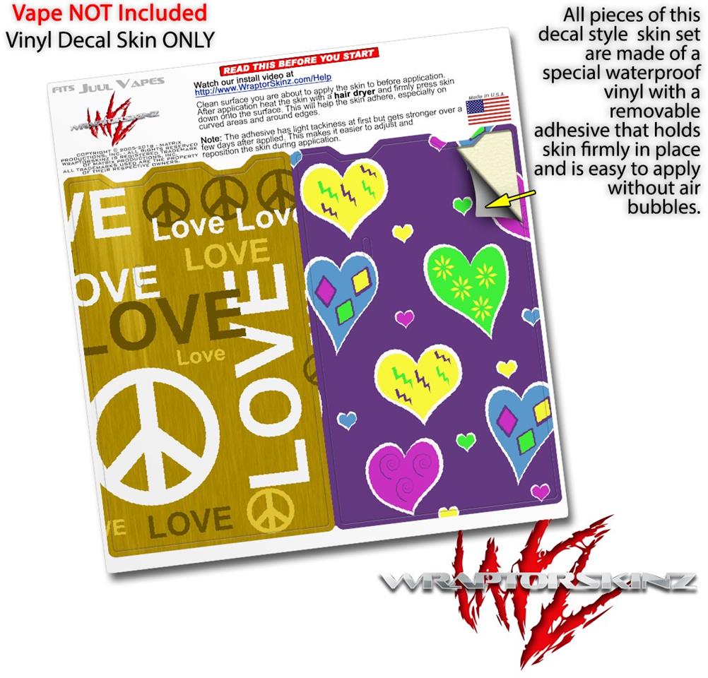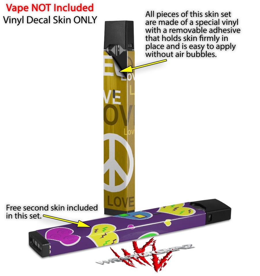 Skin Decal Wrap 2 Pack for Juul Vapes Love and Peace Yellow JUUL NOT INCLUDED