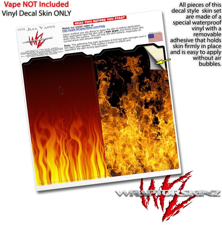 Skin Decal Wrap 2 Pack for Juul Vapes Fire on Black JUUL NOT INCLUDED