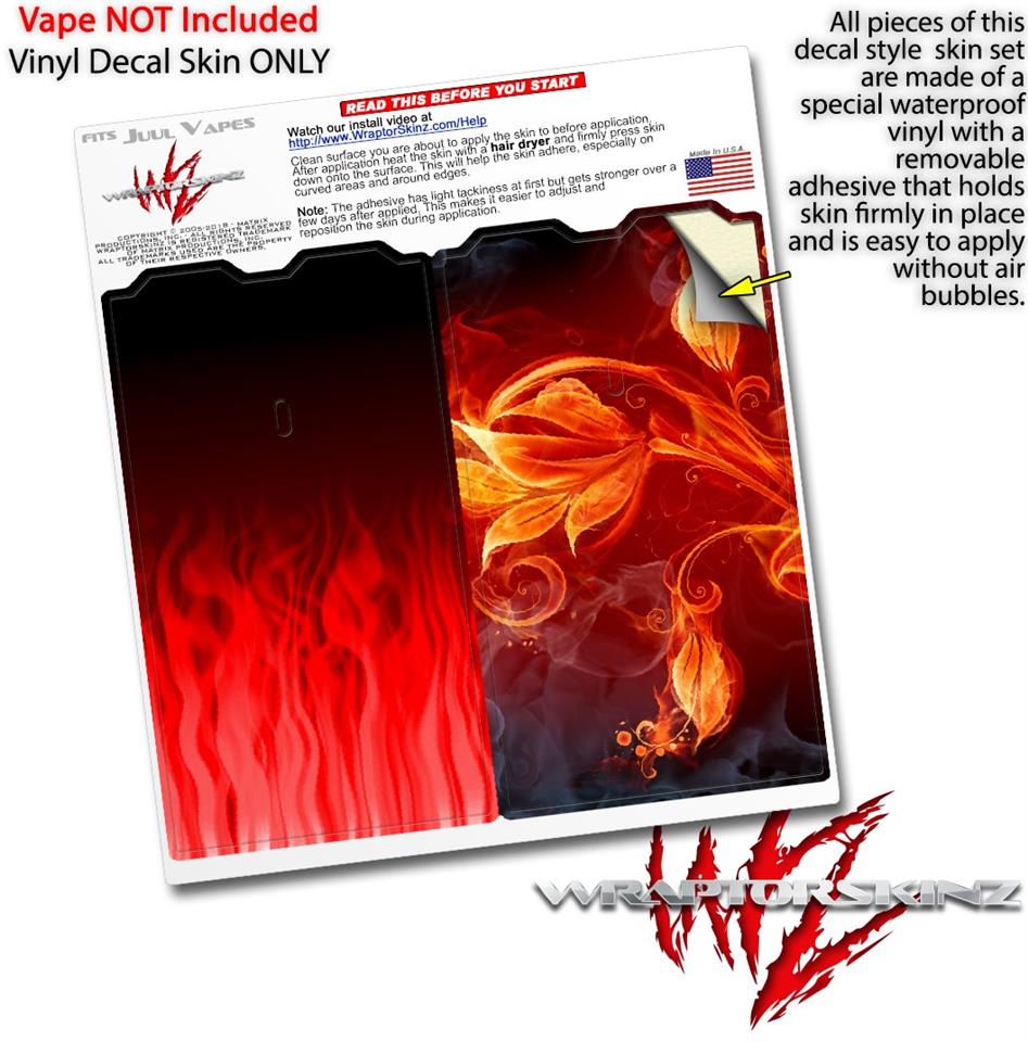 Skin Decal Wrap 2 Pack for Juul Vapes Fire Red JUUL NOT INCLUDED