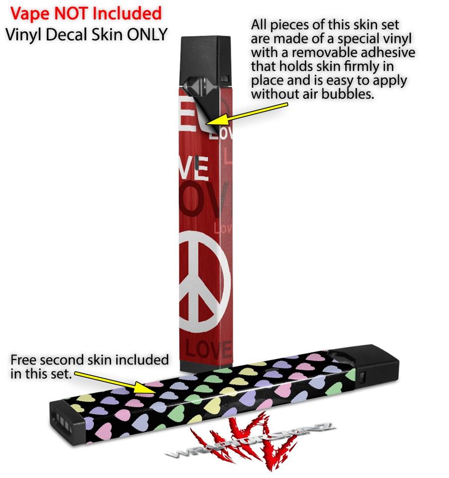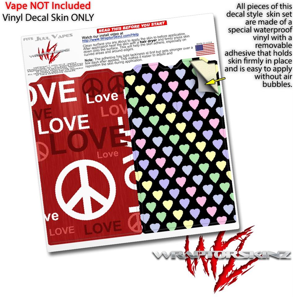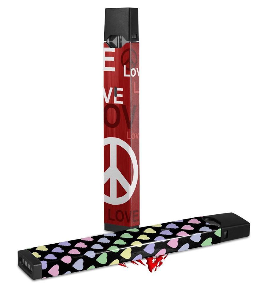 Skin Decal Wrap 2 Pack for Juul Vapes Love and Peace Red JUUL NOT INCLUDED