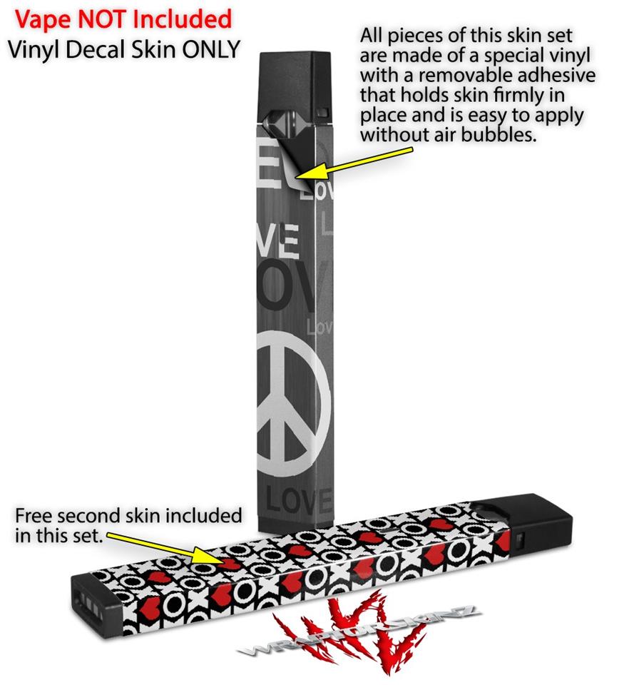 Skin Decal Wrap 2 Pack for Juul Vapes Love and Peace Gray JUUL NOT INCLUDED