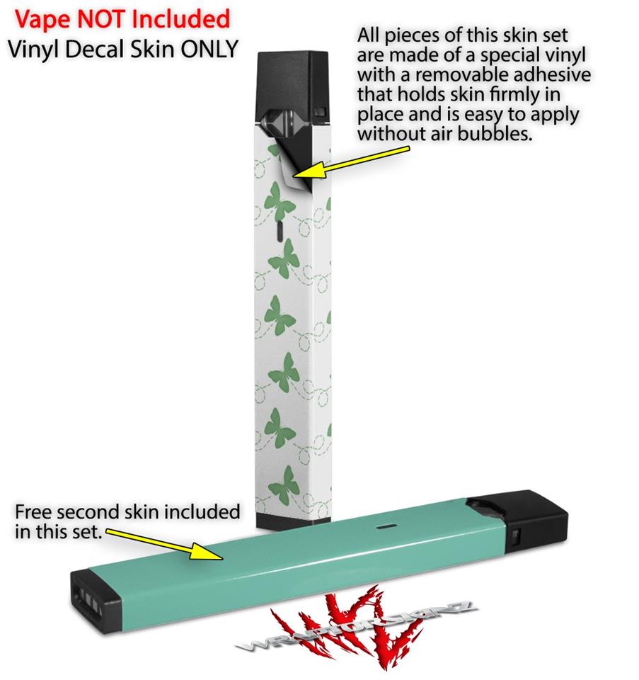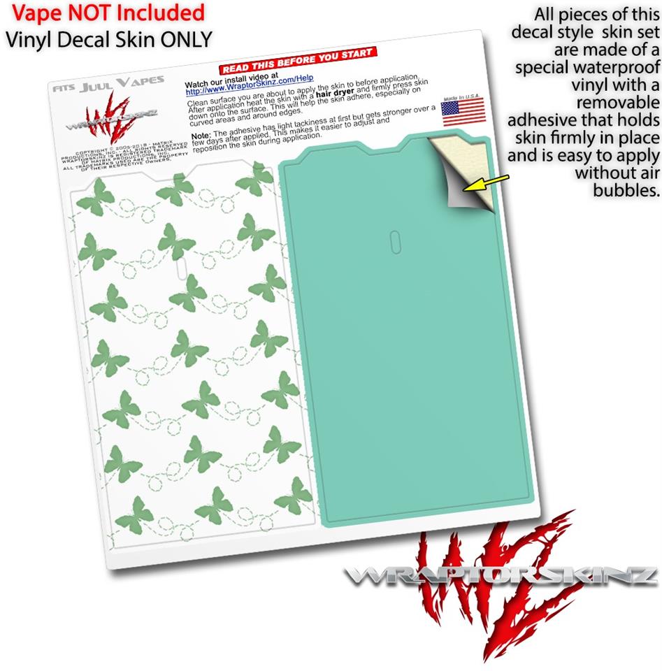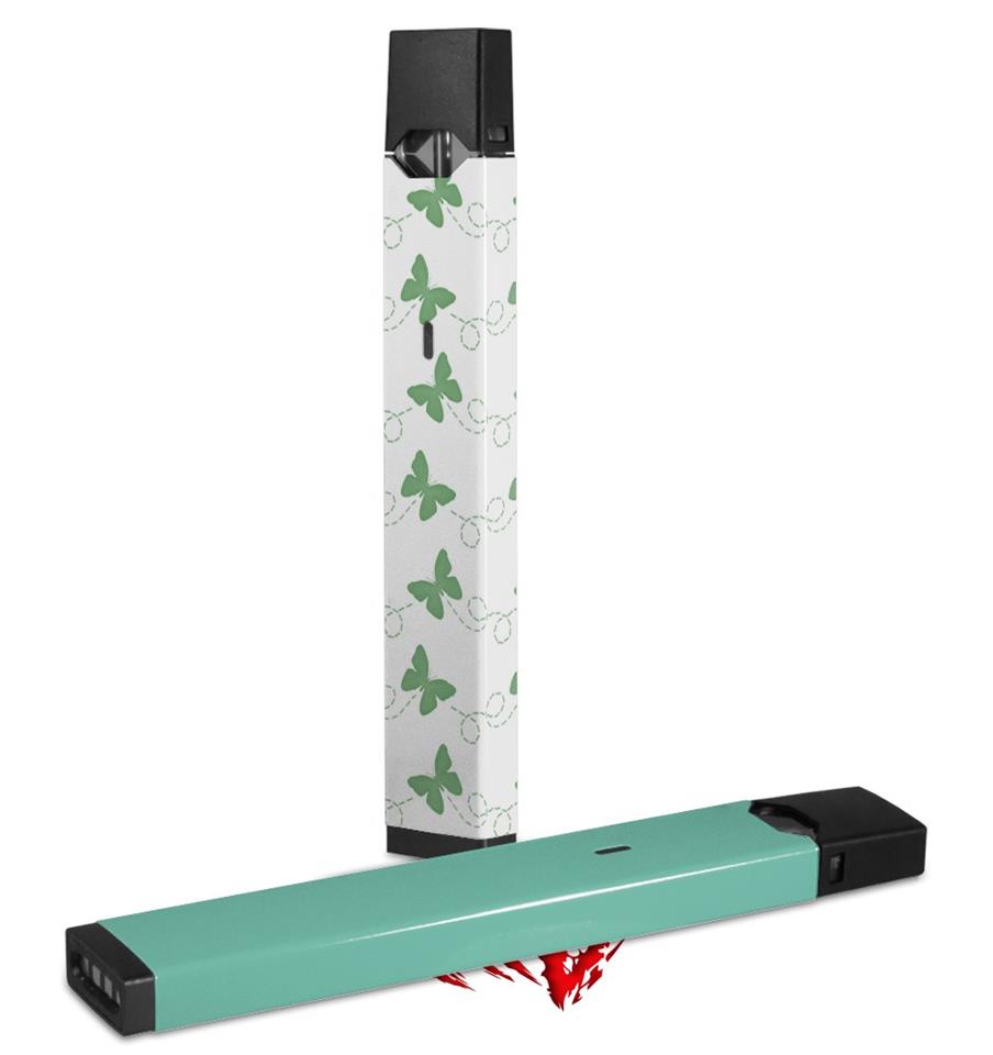 Skin Decal Wrap 2 Pack for Juul Vapes Pastel Butterflies Green on White JUUL NOT INCLUDED