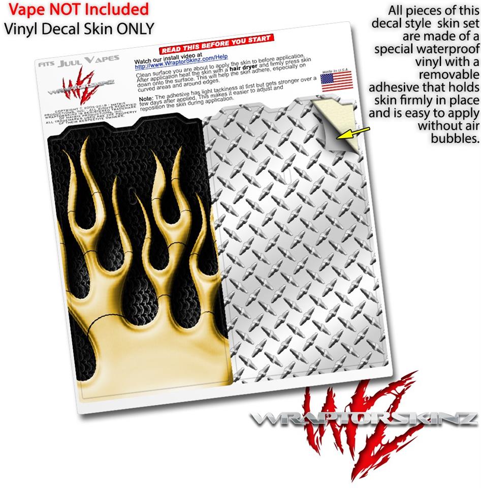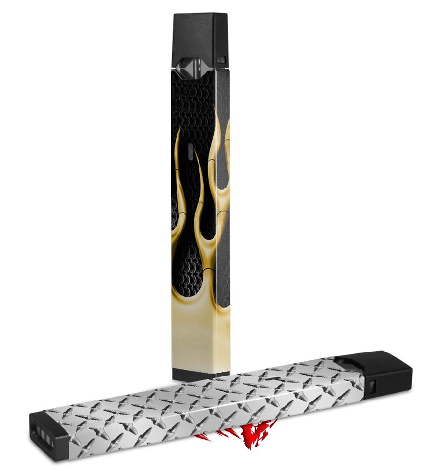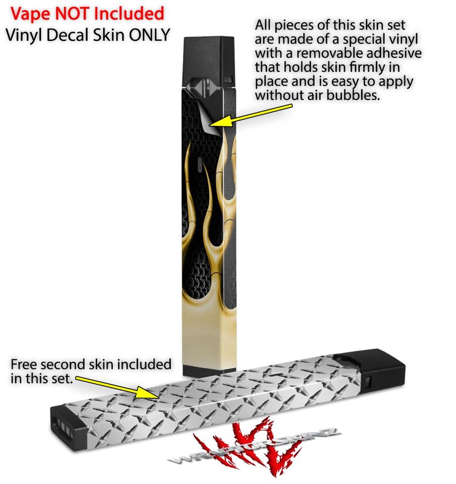 Skin Decal Wrap 2 Pack for Juul Vapes Metal Flames Yellow JUUL NOT INCLUDED