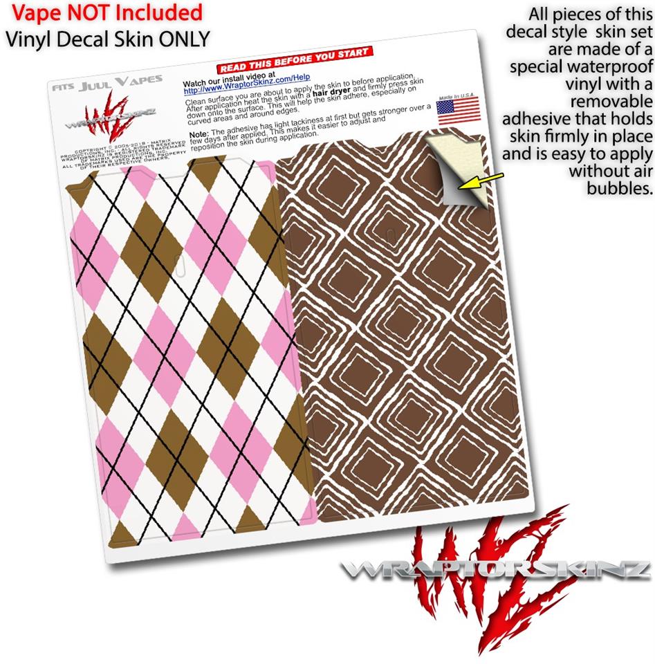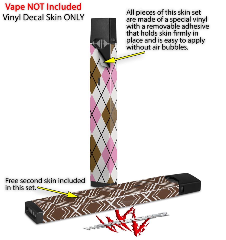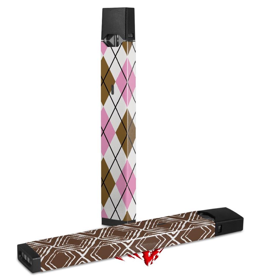 Skin Decal Wrap 2 Pack for Juul Vapes Argyle Pink and Brown JUUL NOT INCLUDED