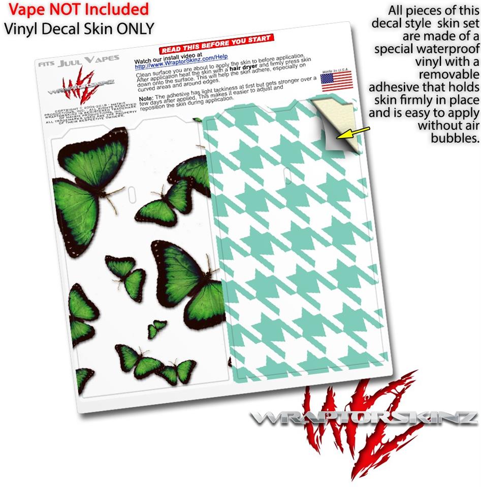 Skin Decal Wrap 2 Pack for Juul Vapes Butterflies Green JUUL NOT INCLUDED