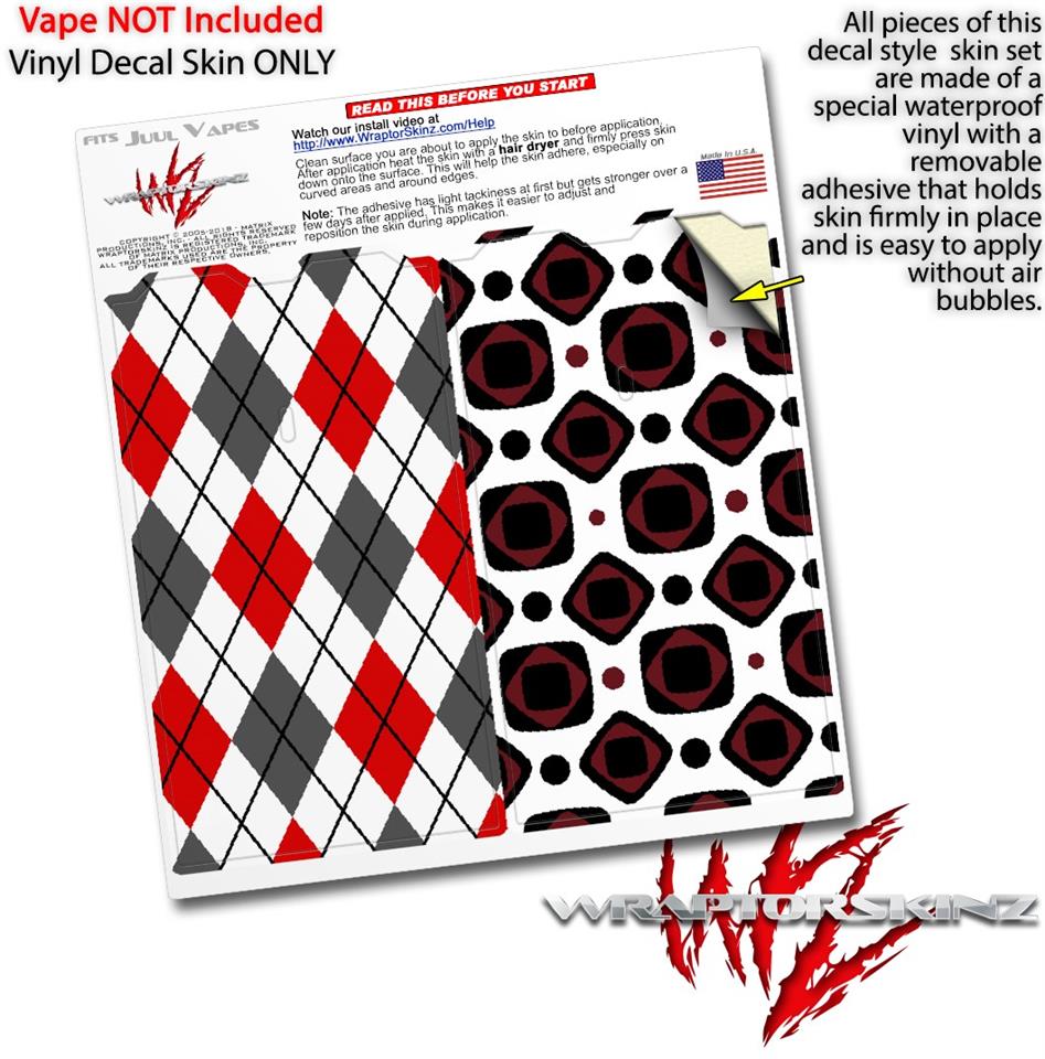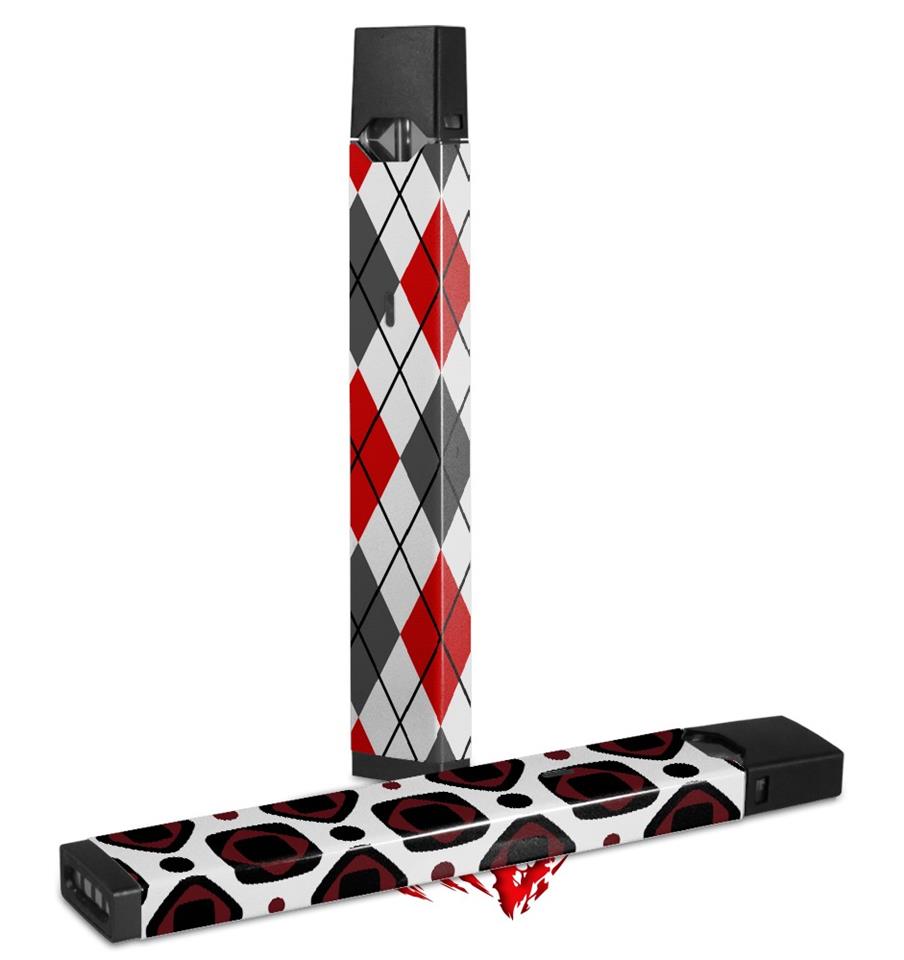 Skin Decal Wrap 2 Pack for Juul Vapes Argyle Red and Gray JUUL NOT INCLUDED