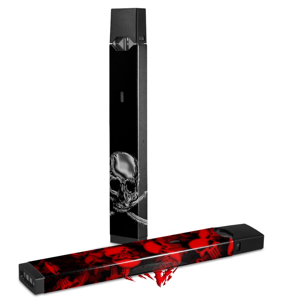 Skin Decal Wrap 2 Pack for Juul Vapes Chrome Skull on Black JUUL NOT INCLUDED