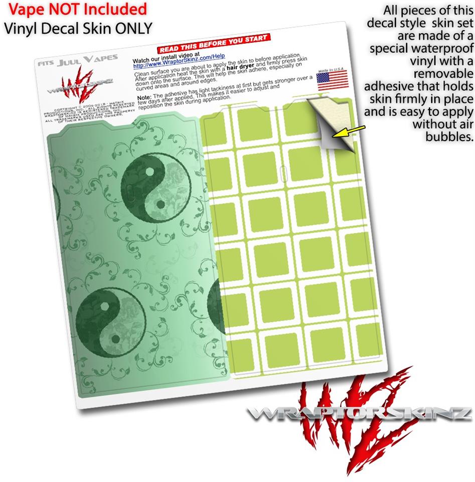 Skin Decal Wrap 2 Pack for Juul Vapes Feminine Yin Yang Green JUUL NOT INCLUDED