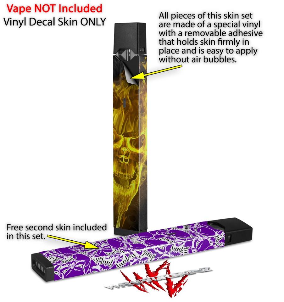Skin Decal Wrap 2 Pack for Juul Vapes Flaming Fire Skull Yellow JUUL NOT INCLUDED