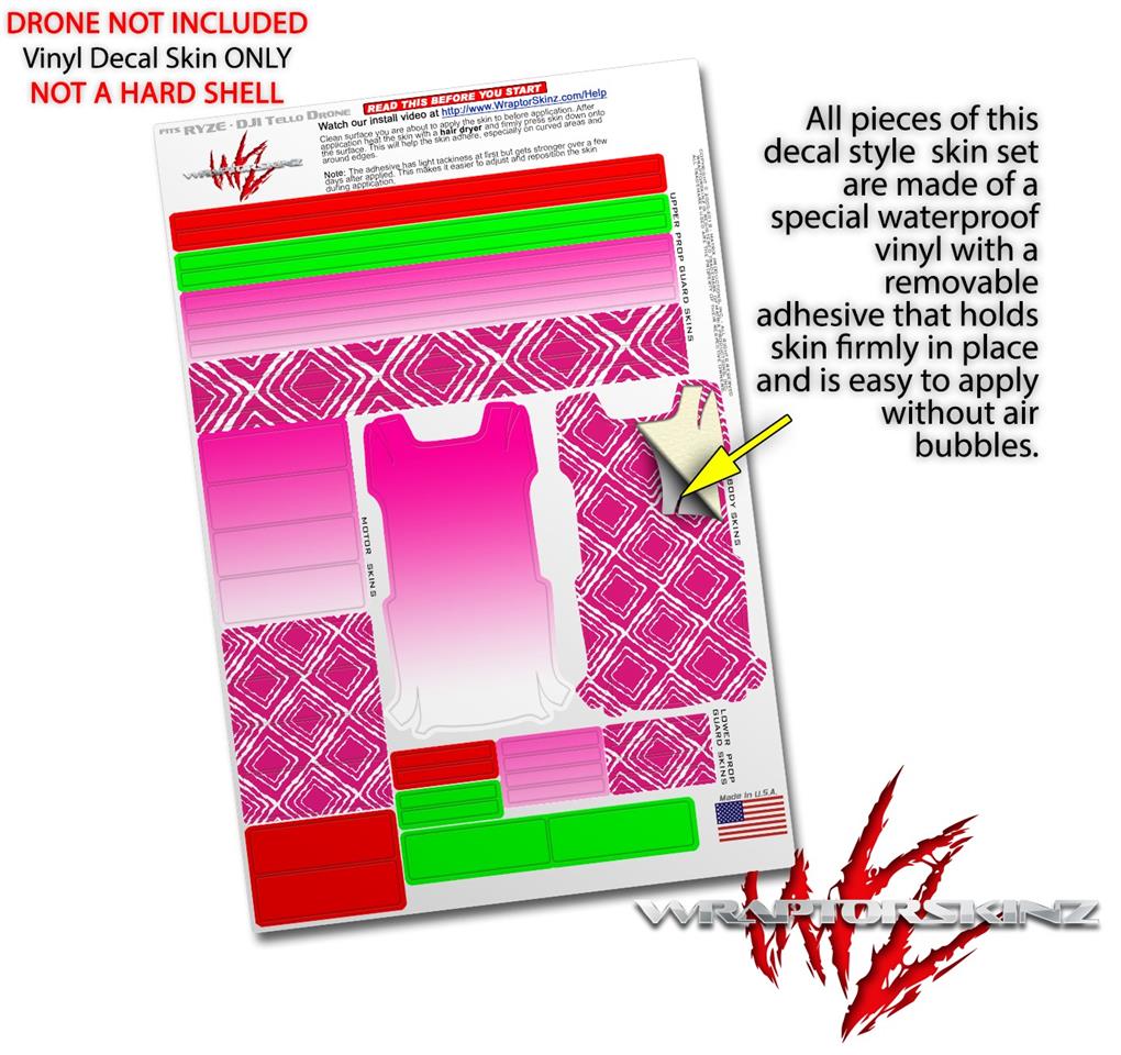 WraptorSkinz® skin wraps are printed using superb photo quality designs and vibrant colors printed with special fade resistant inks that last even in direct sun for years. WraptorSkinz are a composite of two layers of commercial grade materials. The bottom layer is a soft, flexible vinyl with a special removable adhesive that is easily positioned, applied without air bubbles. Next we print the bottom layer with UV protected, fade resistant inks that deliver superb photo quality designs in vibrant colors. Finally we bond a professional grade laminate over the entire skin adding a glossy protective finish. This product is not affiliated with or endorsed by the Ryze or DJI brand.