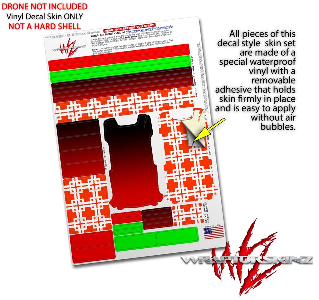 WraptorSkinz® skin wraps are printed using superb photo quality designs and vibrant colors printed with special fade resistant inks that last even in direct sun for years. WraptorSkinz are a composite of two layers of commercial grade materials. The bottom layer is a soft, flexible vinyl with a special removable adhesive that is easily positioned, applied without air bubbles. Next we print the bottom layer with UV protected, fade resistant inks that deliver superb photo quality designs in vibrant colors. Finally we bond a professional grade laminate over the entire skin adding a glossy protective finish. This product is not affiliated with or endorsed by the Ryze or DJI brand.