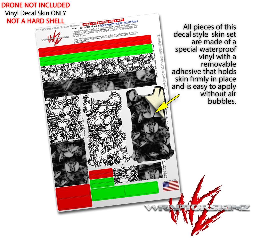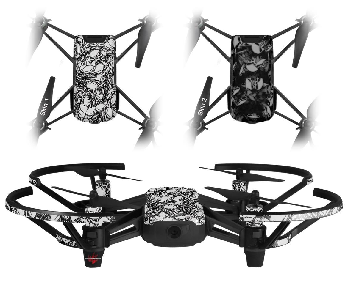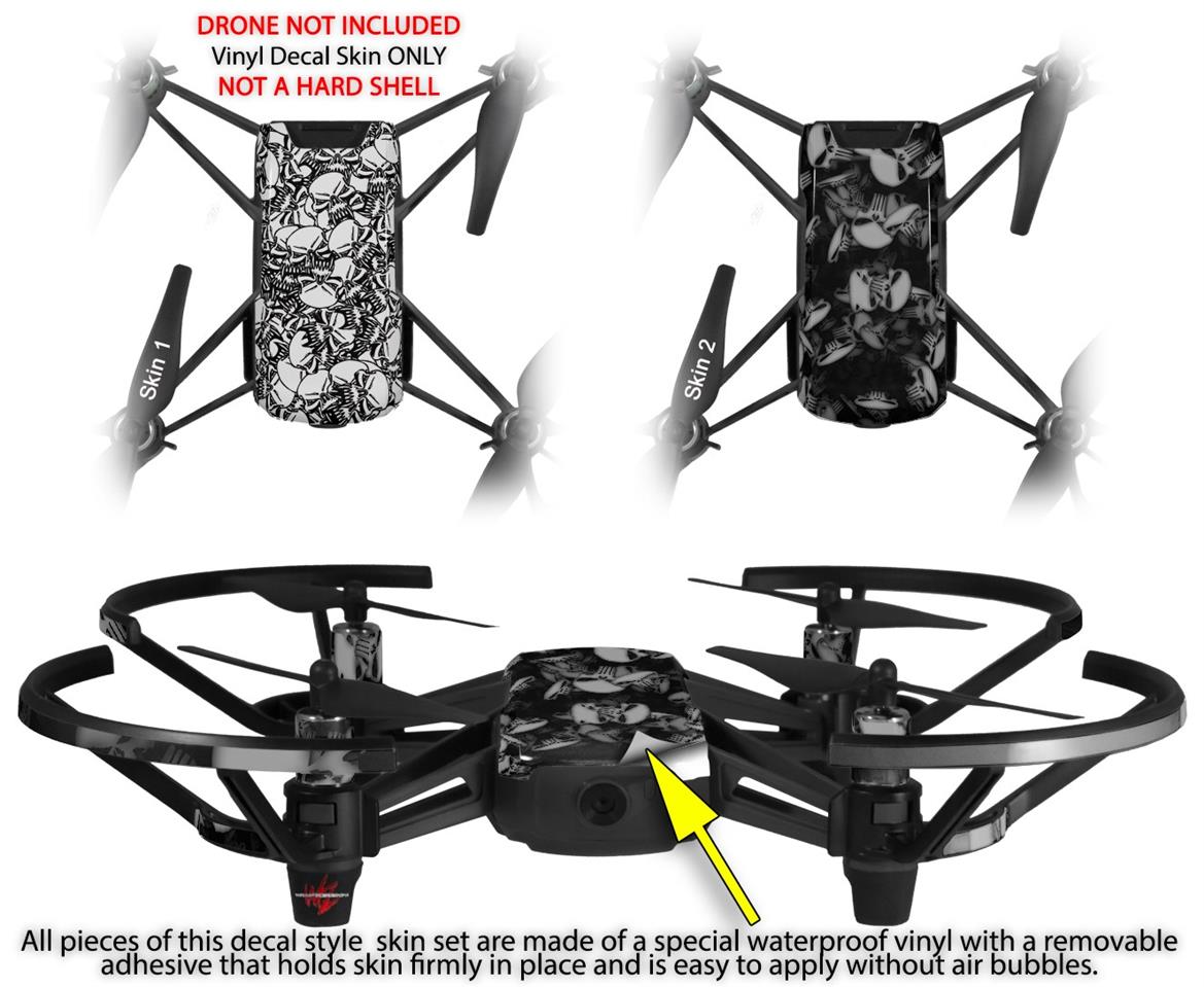 Skin Decal Wrap 2 Pack for DJI Ryze Tello Drone Scattered Skulls White DRONE NOT INCLUDED