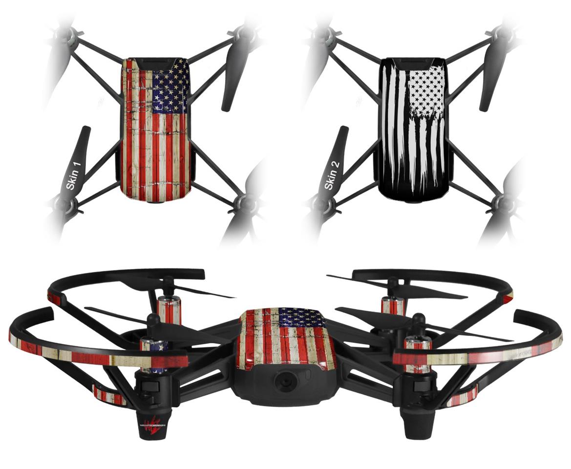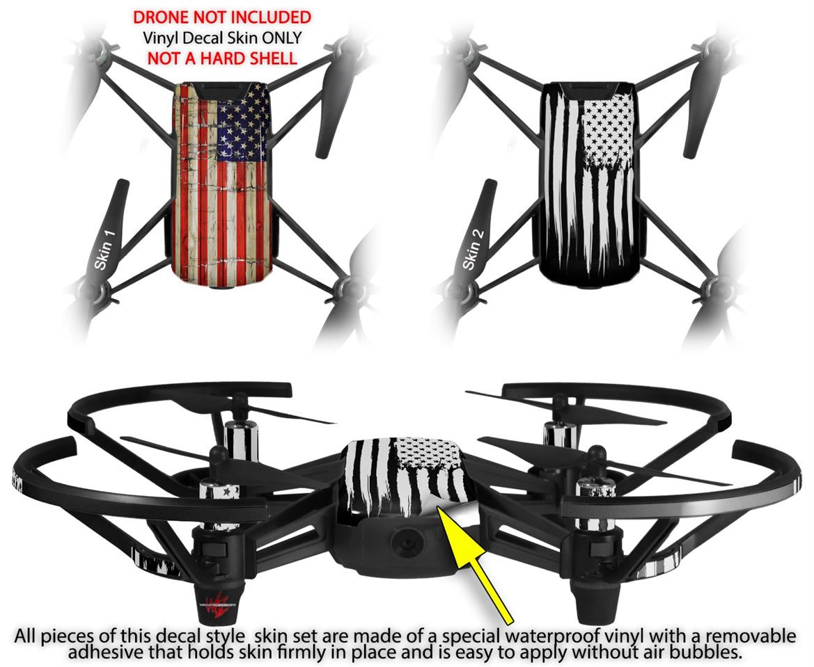 Skin Decal Wrap 2 Pack for DJI Ryze Tello Drone Painted Faded and Cracked USA American Flag DRONE NOT INCLUDED